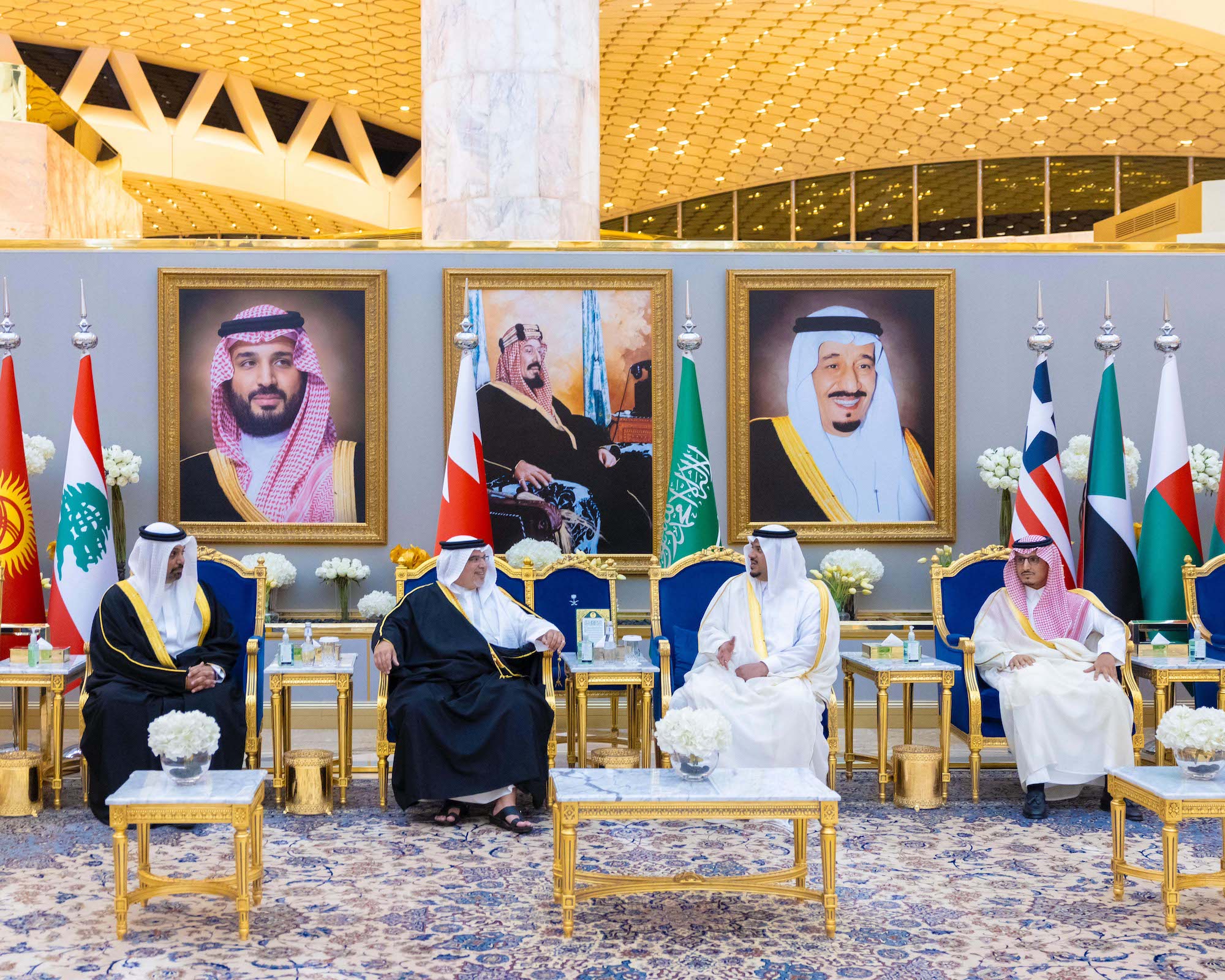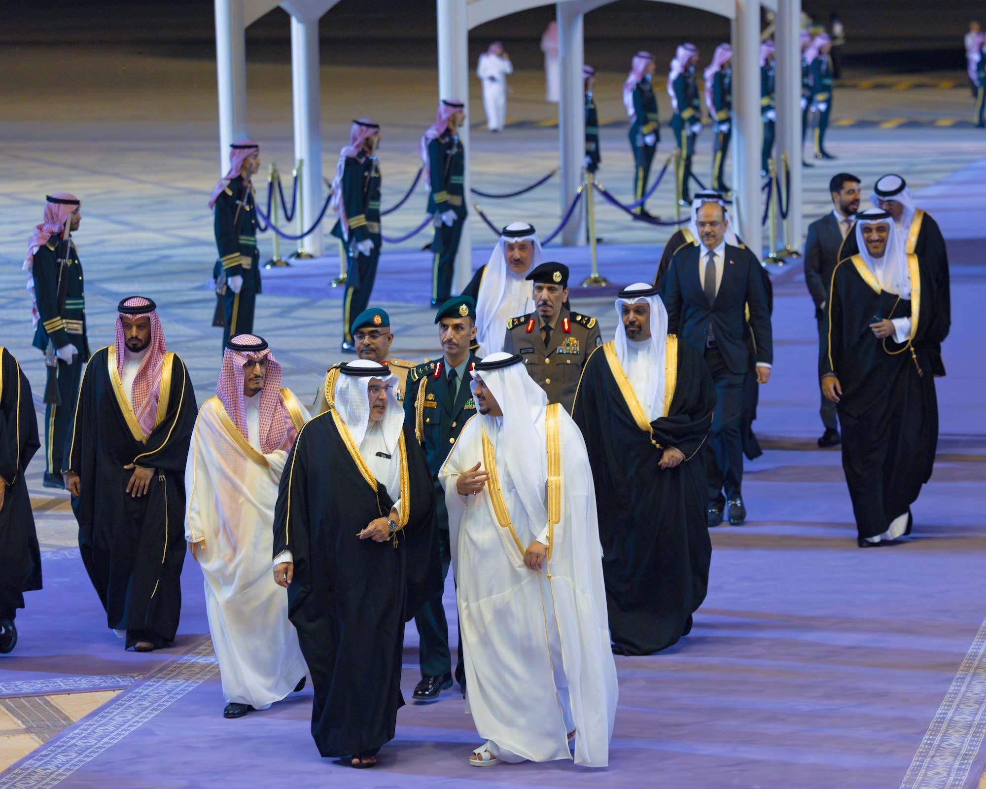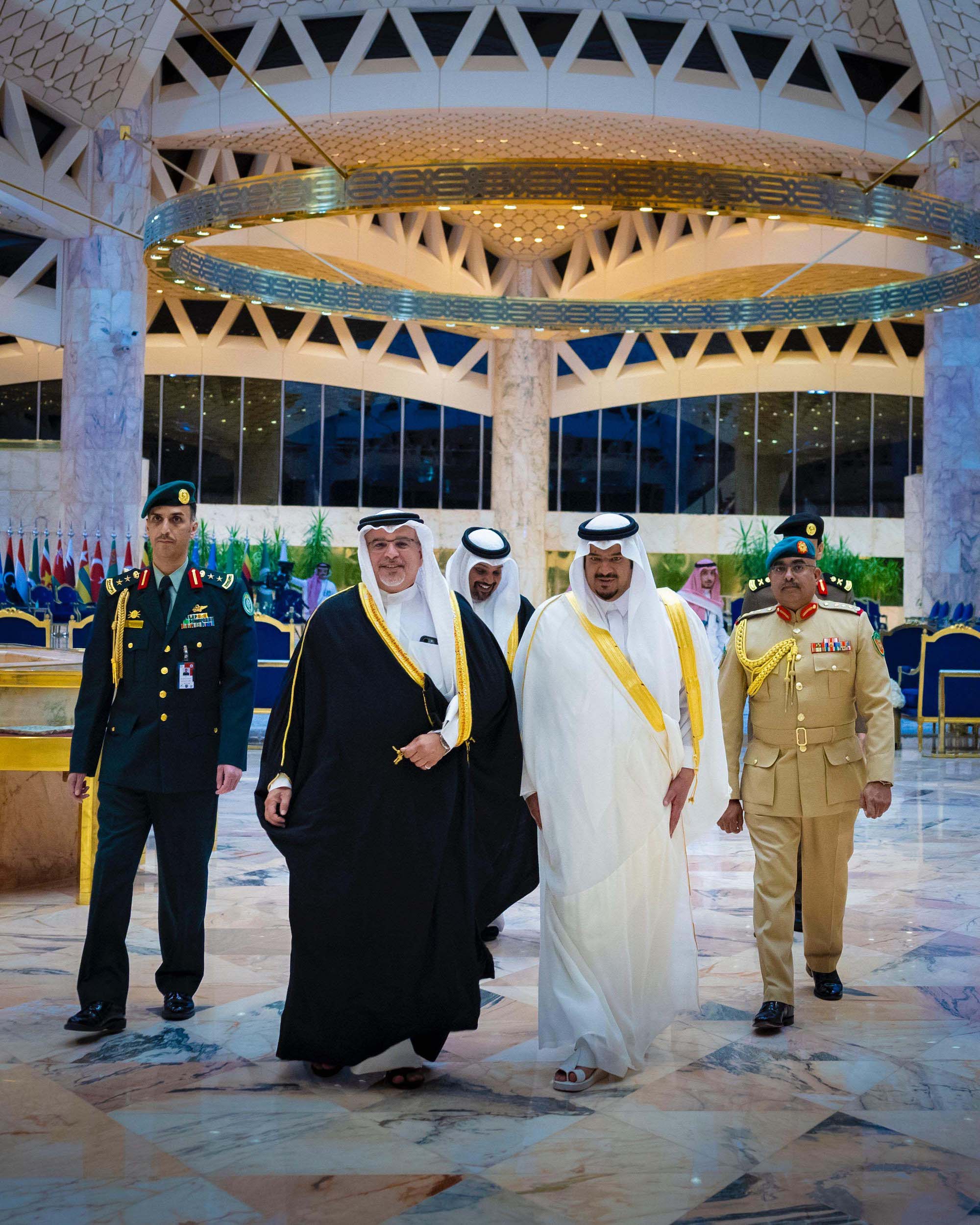 Upon arrival, HRH the Crown Prince and Prime Minister was received by the Governor of Riyadh Province, HRH Prince Faisal bin Bandar bin Abdulaziz Al Saud, the Deputy Governor of the Riyadh Province, HRH Prince Mohammed bin Abdulrahman bin Abdulaziz Al Saud, the Director General of the General Administration for the European Countries at the Ministry of Foreign Affairs of Saudi Arabia, HRH Prince Saad bin Mansour bin Abdulaziz Al Saud, the Ambassador of Bahrain to Saudi Arabia, HE Shaikh Ali bin Abdulrahman bin Ali Al Khalifa, and a number of senior officials.
