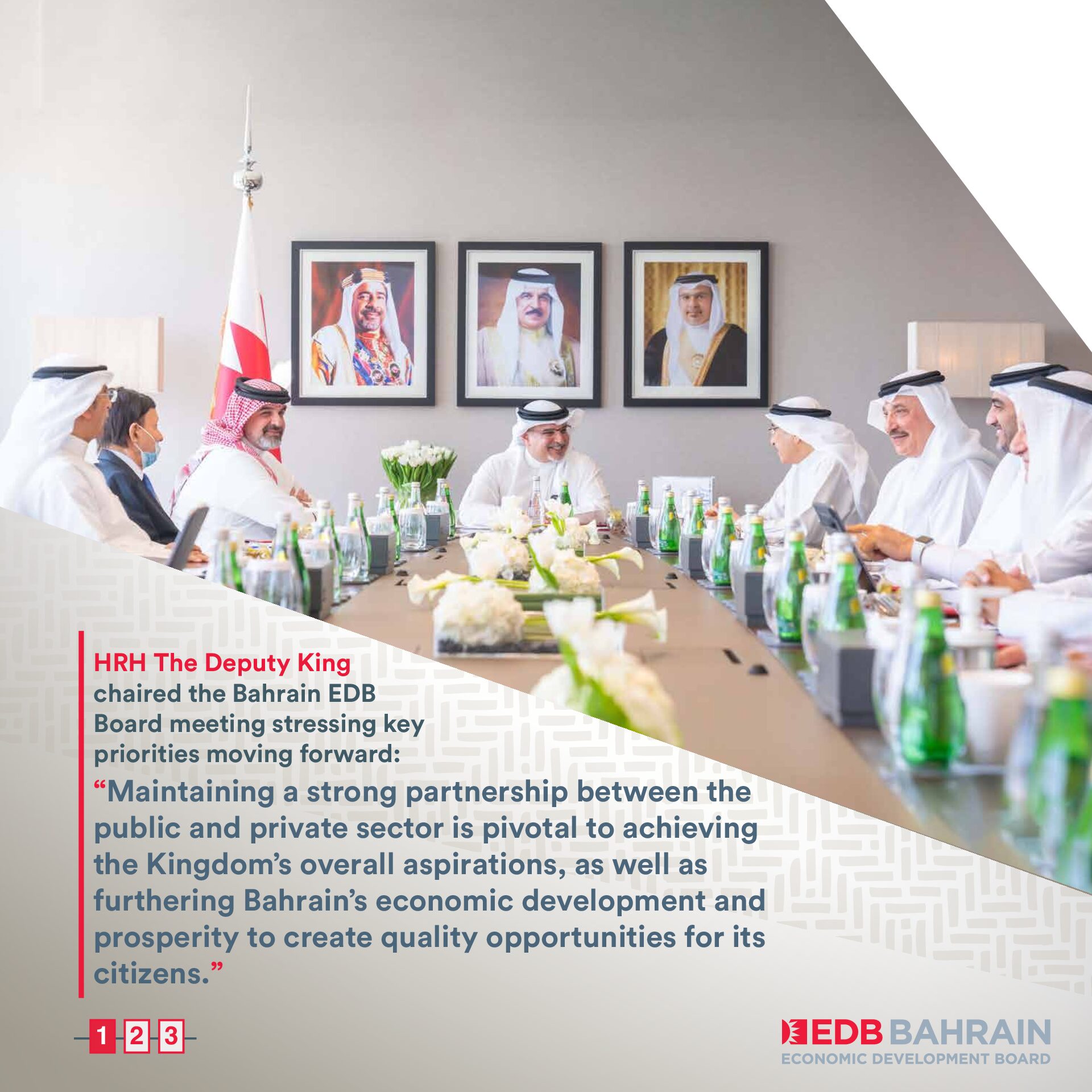The Deputy King, His Royal Highness Prince Salman bin Hamad Al Khalifa, today chaired the EDB’s Board of Directors Meeting at its headquarters in Bahrain Bay.