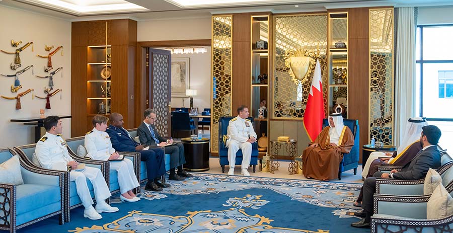 HRH Prince Salman bin Hamad welcomed Vice Admiral Cooper and HE the Ambassador, noting the advancement of bilateral relations and development achieved through various levels of cooperation.
