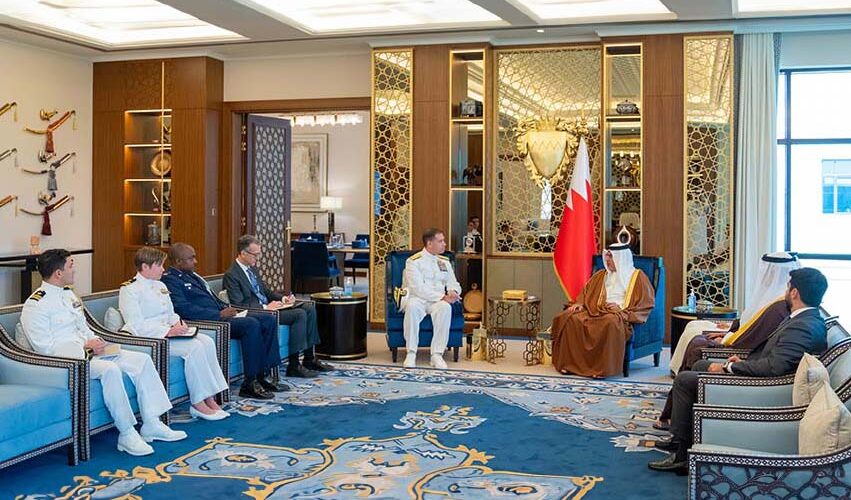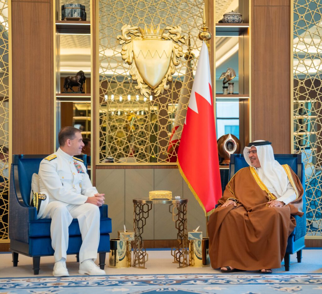 HRH the Crown Prince, Deputy Supreme Commander of the Armed Forces and Prime Minister receives the Commander of the US Fifth Fleet and the US Ambassador