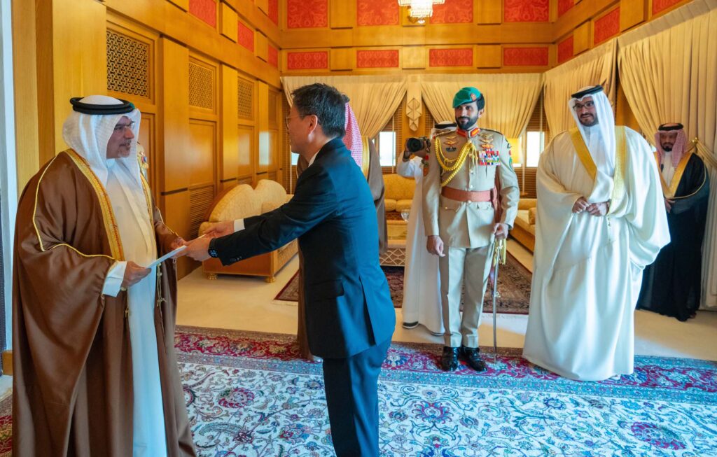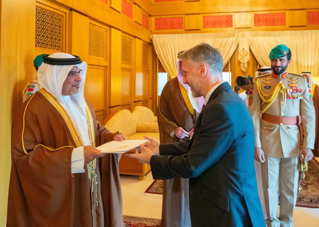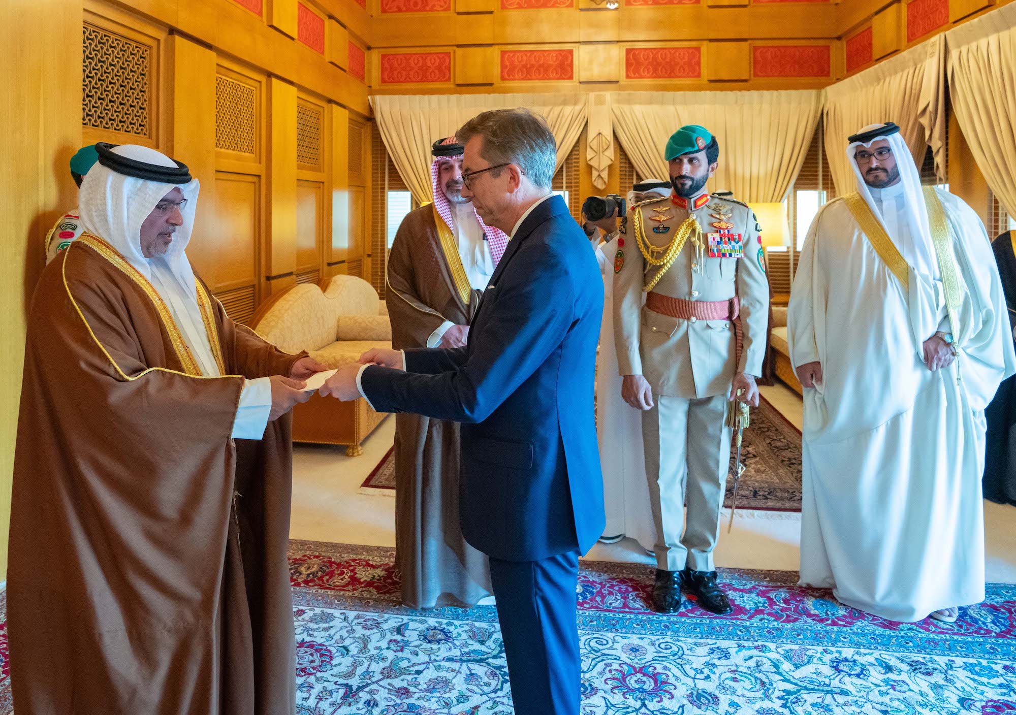 The newly appointed ambassadors had arrived separately at Sakhir Palace, where they were received by the Chief of Royal Protocol, Major-General Khalifa bin Ahmed Al-Fadhala.