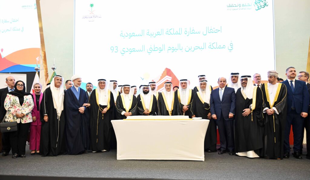 His Royal Highness Prince Salman bin Hamad Al Khalifa, the Crown Prince and Prime Minister, deputised Shaikh Khalid bin Abdullah Al Khalifa, Deputy Prime Minister, to attend the reception hosted by the Embassy of the Kingdom of Saudi Arabia to the Kingdom of Bahrain on the 93rd Saudi Arabia’s National Day.