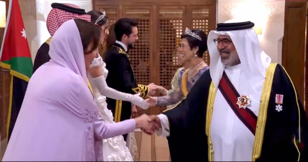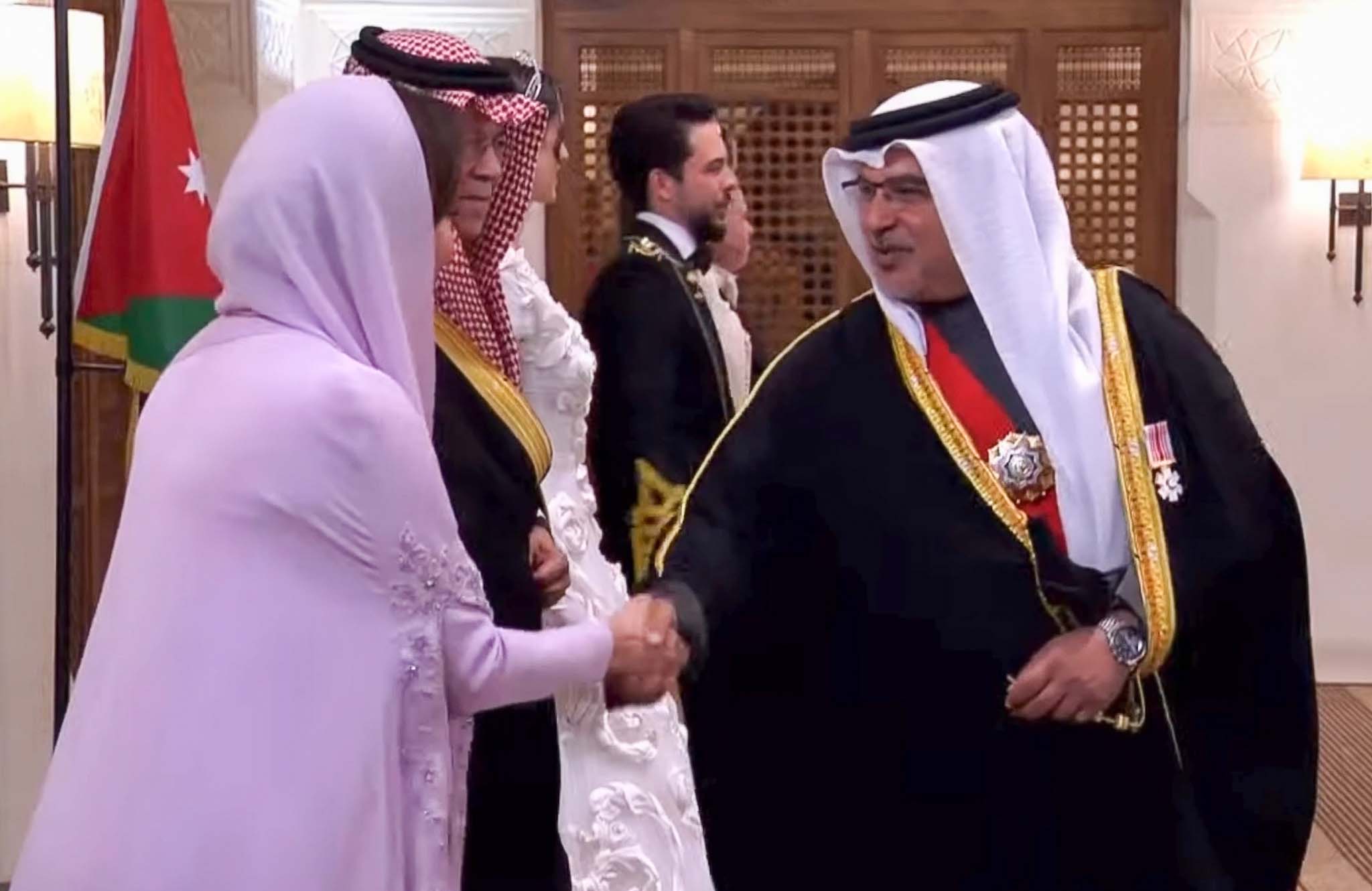 His Royal Highness Prince Salman bin Hamad Al Khalifa, the Crown Prince and Prime Minister, along with His Majesty the King’s Representative for Humanitarian Works and Youth Affairs, His Highness Shaikh Nasser bin Hamad Al Khalifa, and the Minister of Finance and National Economy, HE Shaikh Salman bin Khalifa Al Khalifa, today attended the marriage ceremony of the Crown Prince of the Hashemite Kingdom of Jordan, His Royal Highness Prince Hussein bin Abdullah II, in Amman.