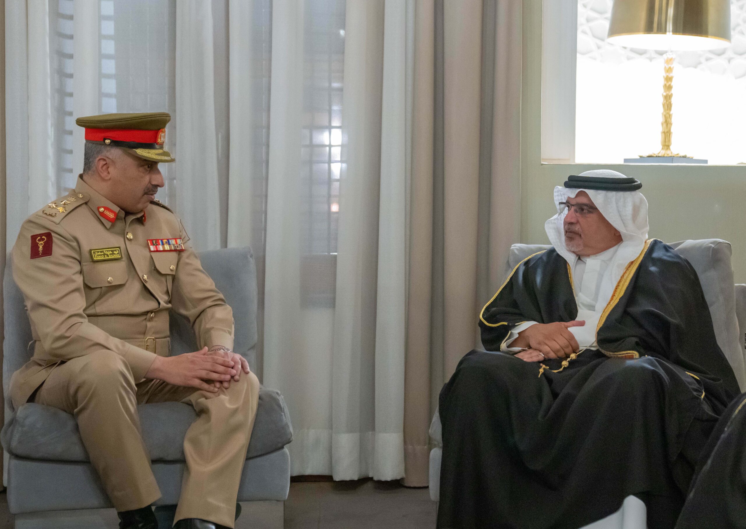 His Royal Highness Prince Salman bin Hamad Al Khalifa, the Crown Prince, Deputy Supreme Commander of the Armed Forces, and Prime Minister today met with the newly appointed Acting Commander of the Royal Medical Services, Brigadier General Doctor Shaikh Fahad bin Khalifa bin Salman Al Khalifa.