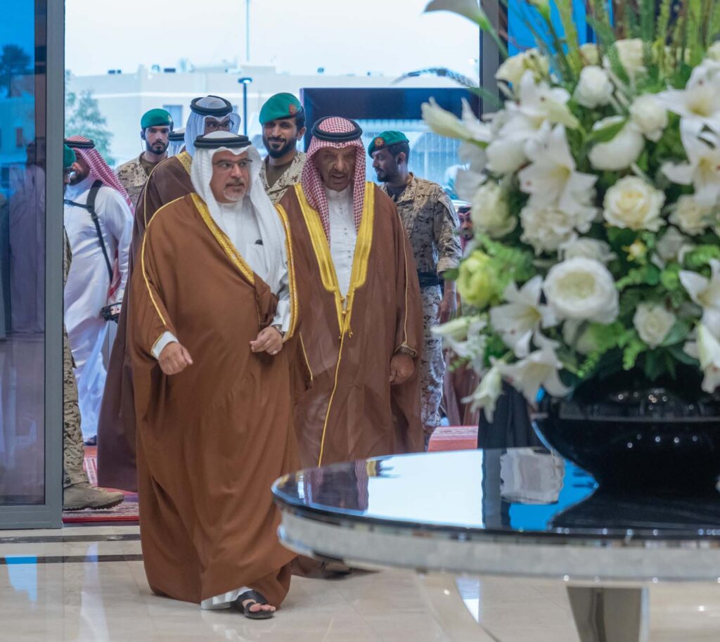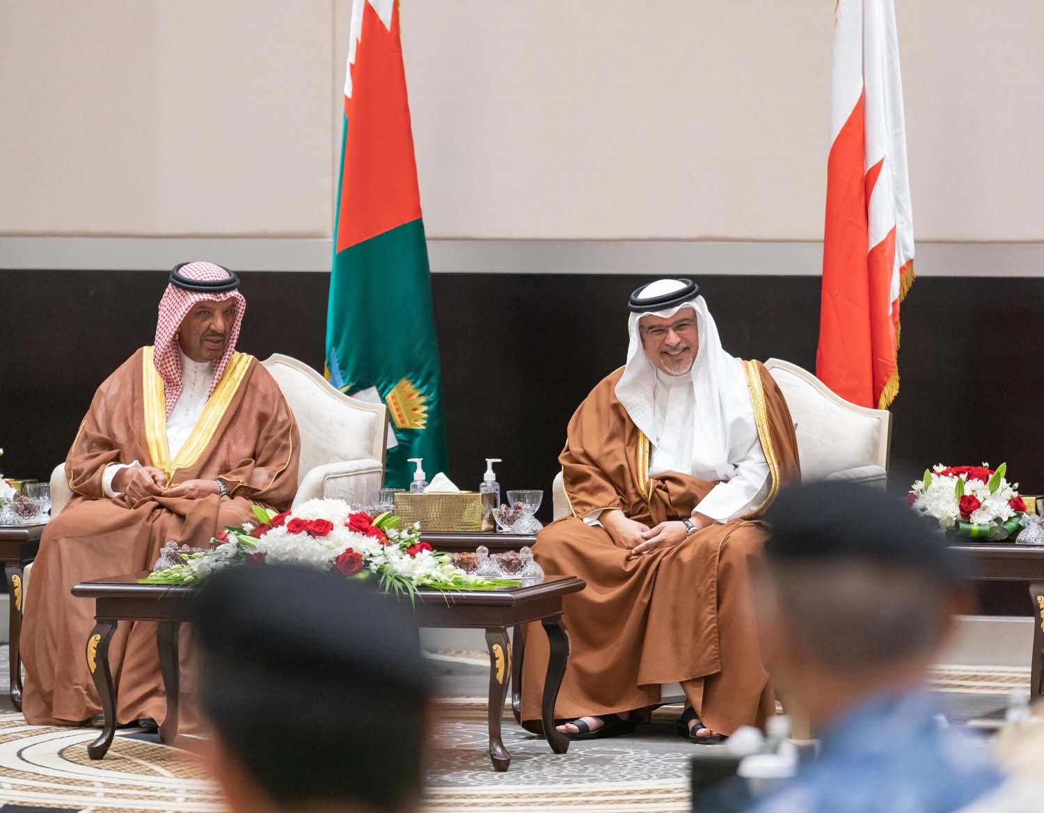 Upon arrival, His Royal Highness was received by the Commander-in-Chief of the BDF, HE Field Marshal Shaikh Khalifa bin Ahmed Al Khalifa, the Minister of Defence, HE Lieutenant General Abdullah bin Hassan Al Nuaimi, the BDF Chief of Staff, Lieutenant-General Theyab bin Saqr Al-Nuaimi, and other senior BDF officers.