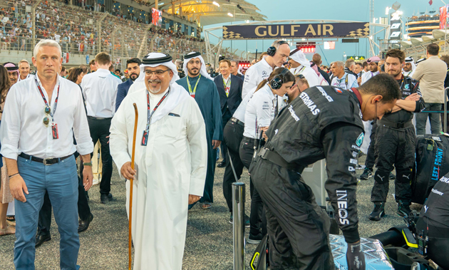 His Royal Highness Prince Salman bin Hamad Al Khalifa, the Crown Prince and Prime Minister, today attended the 2023 Formula 1 Gulf Air Bahrain Grand Prix, where he toured the Bahrain International Circuit (BIC) track to meet with fans and review preparations for the race.