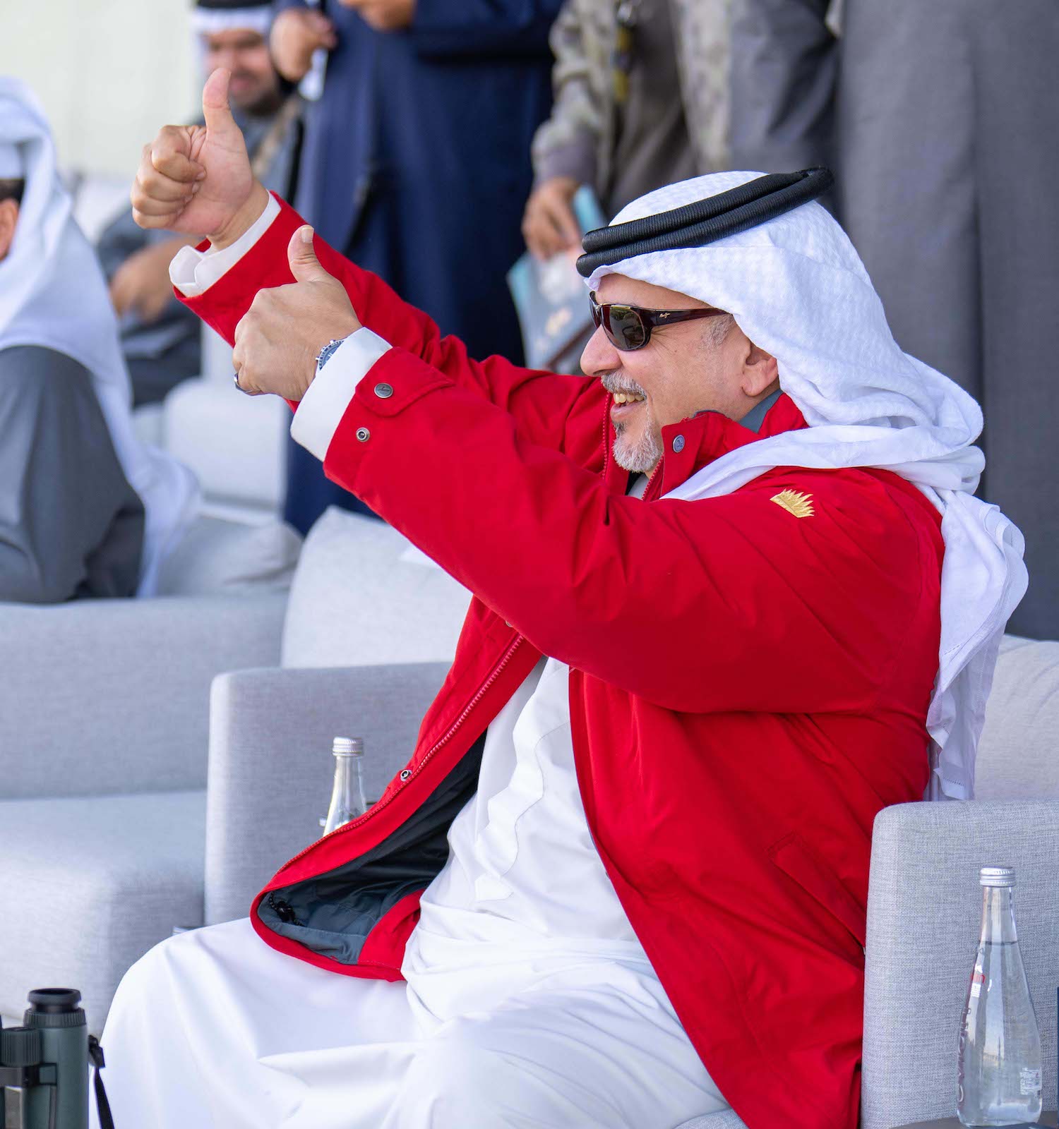 Upon arrival, HRH the Crown Prince and Prime Minister was received by the Representative of HM the King for Humanitarian Works and Youth Affairs and Chairman of the Supreme Council for Youth and Sports, His Highness Shaikh Nasser bin Hamad Al Khalifa, the First Deputy President of the Supreme Council for Youth and Sports, Chairman of the General Sports Authority, and President of Bahrain Olympic Committee, His Highness Shaikh Khalid bin Hamad Al Khalifa, the Chairman of the Rashid Equestrian and Horse Racing Club High Committee, His Highness Shaikh Isa bin Salman bin Hamad Al Khalifa, and a number of other senior officials.