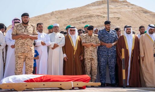 He was accompanied by Deputy Prime Minister Shaikh Ali bin Khalifa Al Khalifa and Interior Minister Shaikh Rashid bin Abdullah Al Khalifa. HRH the Crown Prince performed, alongside UAE President Shaikh Khalifa bin Zayed Al Nahyan and his Representative Shaikh Sultan bin Zayed Al Nahyan, rulers and Crown Princes, the mourning prayer at Shaikh Zayed Grand Mosque in Abu Dhabi. HRH the Crown Prince extended his heart-felt condolences to the UAE President, Abu Dhabi Crown Prince and Deputy Supreme Commander of the UAE Forces Gen.Shaikh Mohammed bin Zayed Al Nahyan and the late Shaikh Ahmed’s brothers.