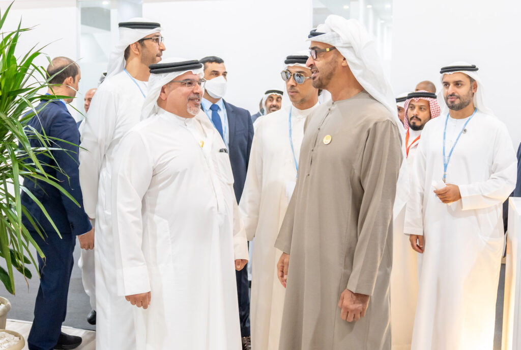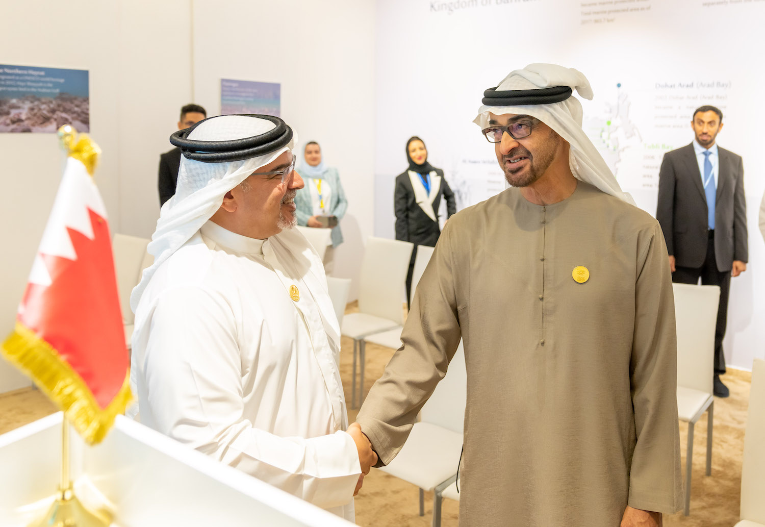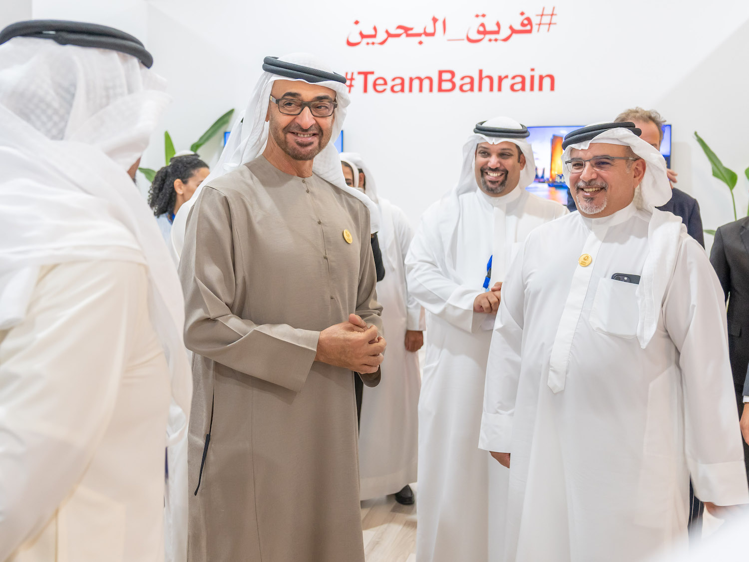 During his visit to Bahrain’s pavilion, HH Sheikh Mohamed bin Zayed was briefed on Bahrain’s initiatives to address climate challenges and capitalise on promising opportunities to attract investment in renewable energy.