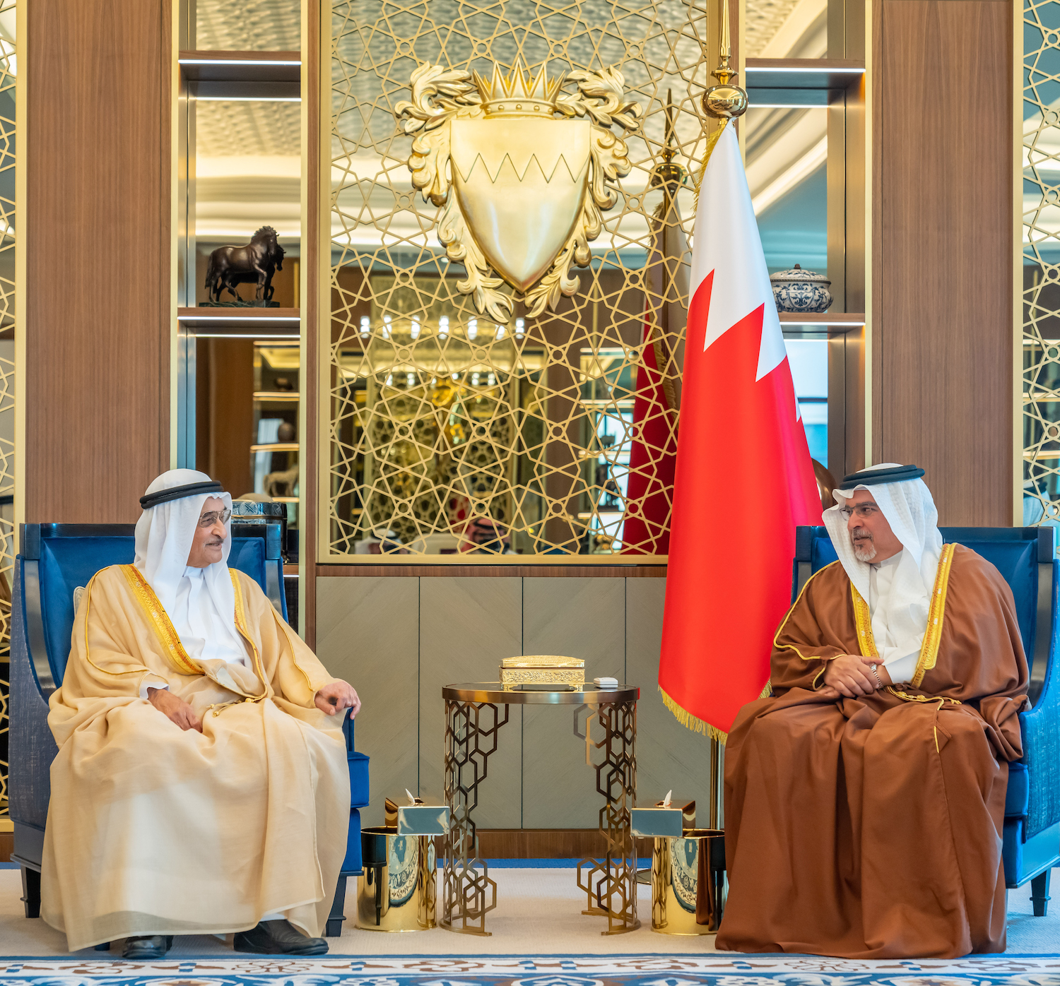 His Royal Highness Prince Salman bin Hamad Al Khalifa, the Crown Prince and Prime Minister, today received the President of the Supreme Council of Health (SCH) and Chairman of the Board of Directors of the Shaikh Abdullah bin Khalid Center for Parental Care, HE Lieutenant General Dr Shaikh Mohammed bin Abdullah Al Khalifa, who presented His Royal Highness with a copy of his book “Shaikh Abdullah bin Khalid .. Preacher, thinker and historian”, at Gudaibiya Palace.