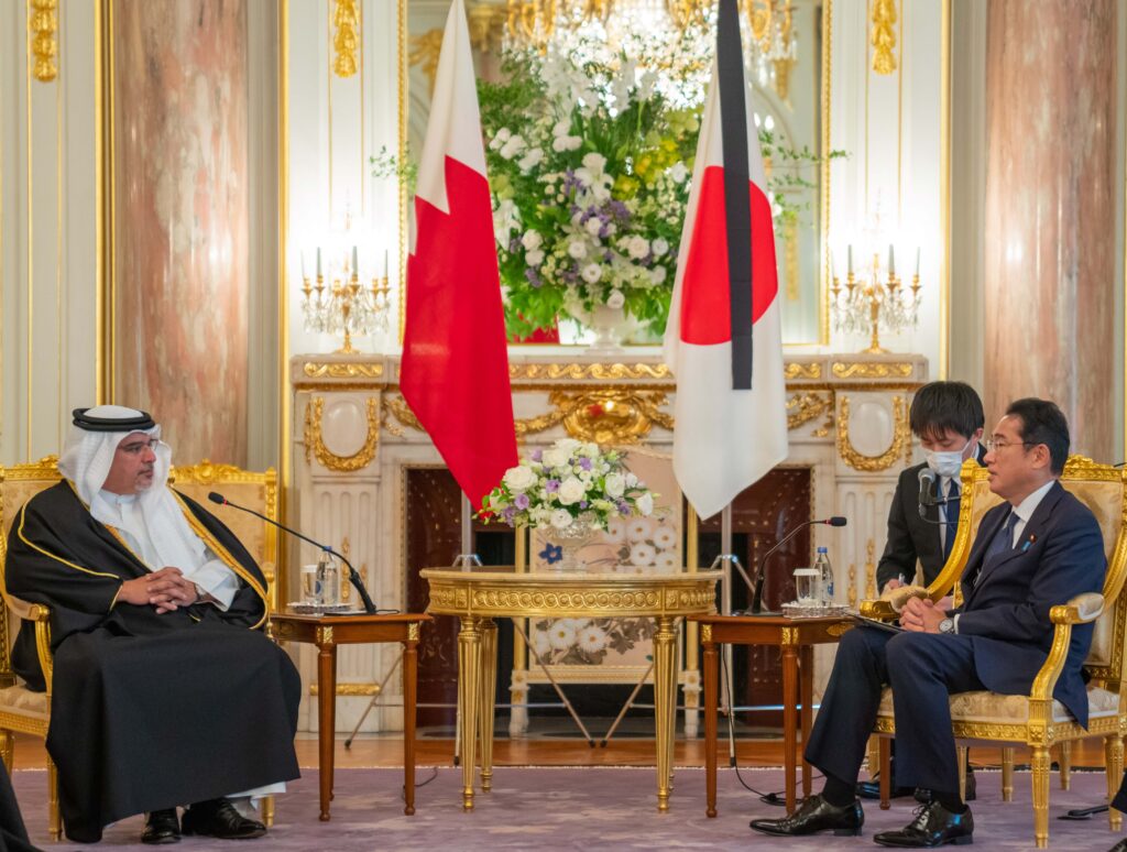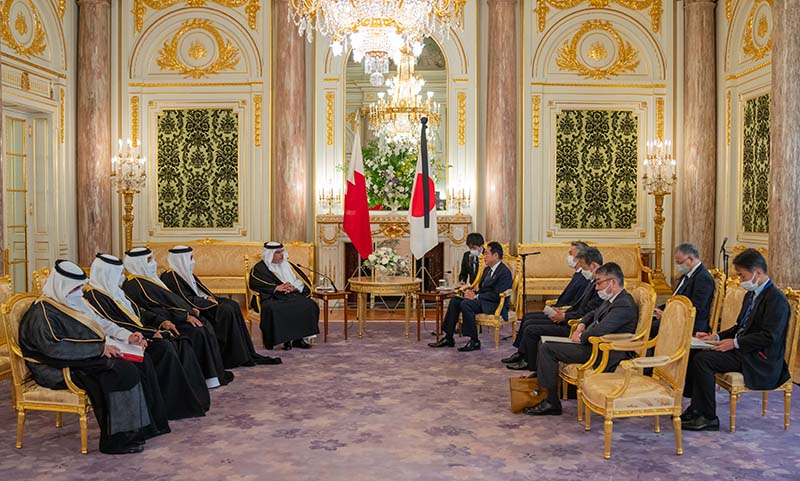 His Royal Highness Prince Salman bin Hamad Al Khalifa, the Crown Prince and Prime Minister, today met with the Prime Minister of Japan, His Excellency Fumio Kishida, at Akasaka Palace, Tokyo.