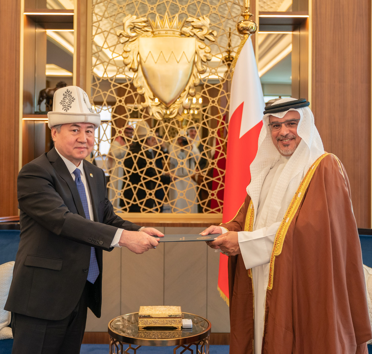 HRH the Deputy King was then presented with a hand-written letter addressed to His Majesty the King from the President of Kyrgyzstan. HE Kulubaev conveyed the President’s greetings to His Majesty the King and HRH the Deputy King, and in return, His Royal Highness conveyed His Majesty the King’s and his greetings to the President of Kyrgyzstan.