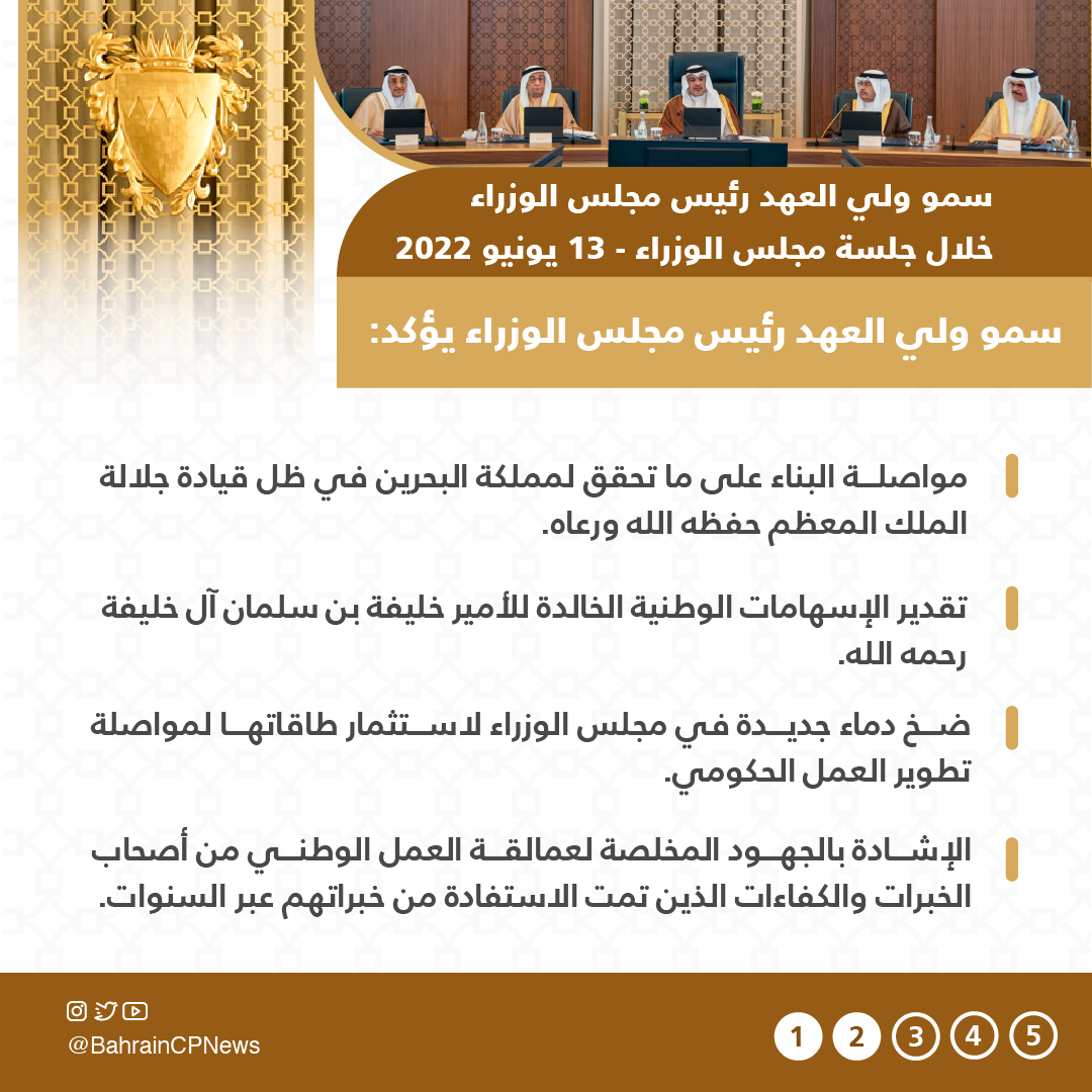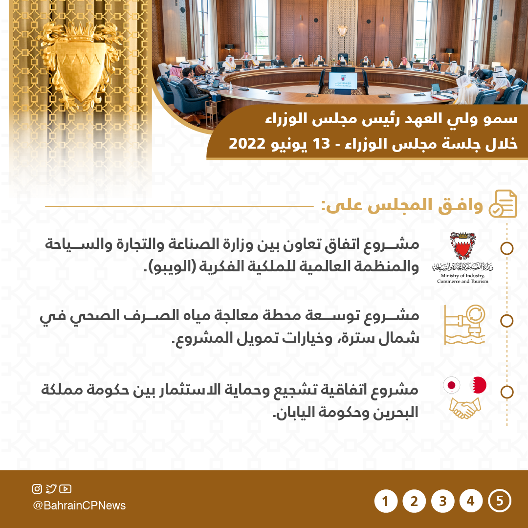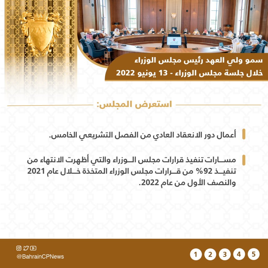The Cabinet commended Team Bahrain for their efforts in advancing the Kingdom’s development goals, which are reflected in the rise of the Bahrain index in several international economic reports, and stressed the importance of continuing to achieve the Kingdom’s wide-ranging development goals.