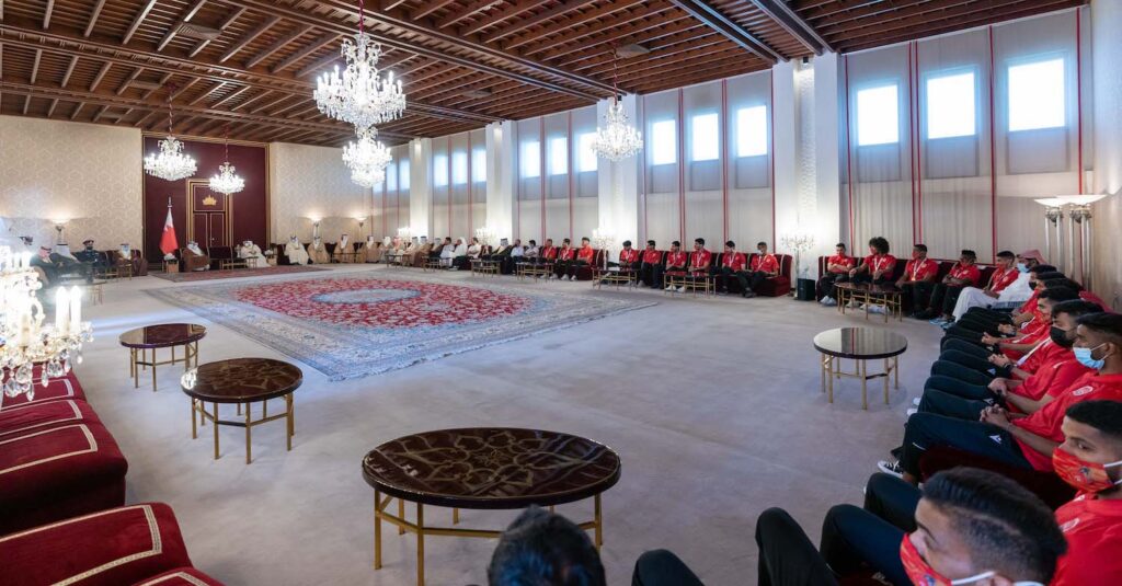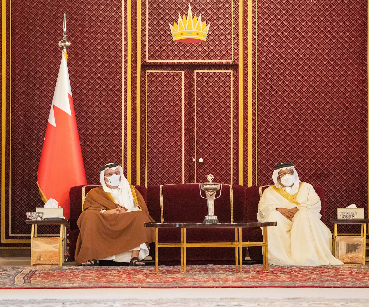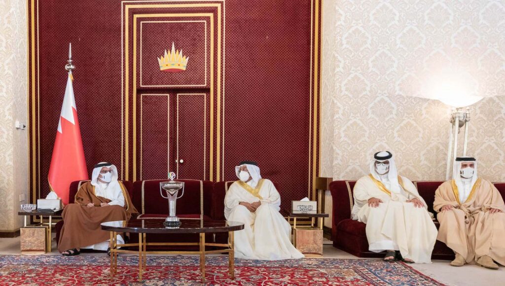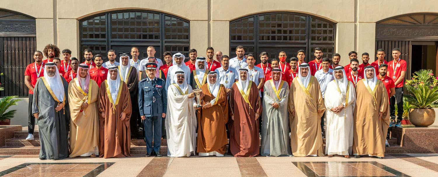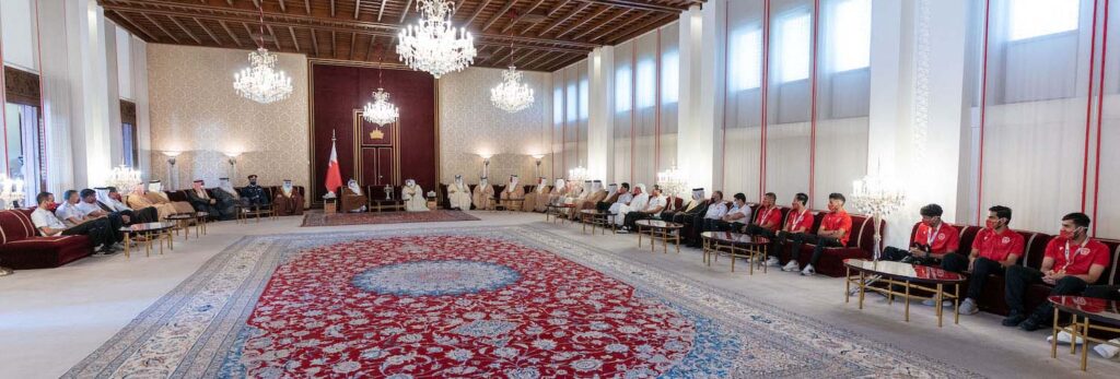 His Royal Highness Prince Salman bin Hamad Al Khalifa, the Crown Prince and Prime Minister, today received the chairman of the Muharraq Sports Club, HE Shaikh Ahmed bin Ali Al Khalifa, members of the board, football team players, as well as the club’s technical and administrative staff at Riffa Palace.