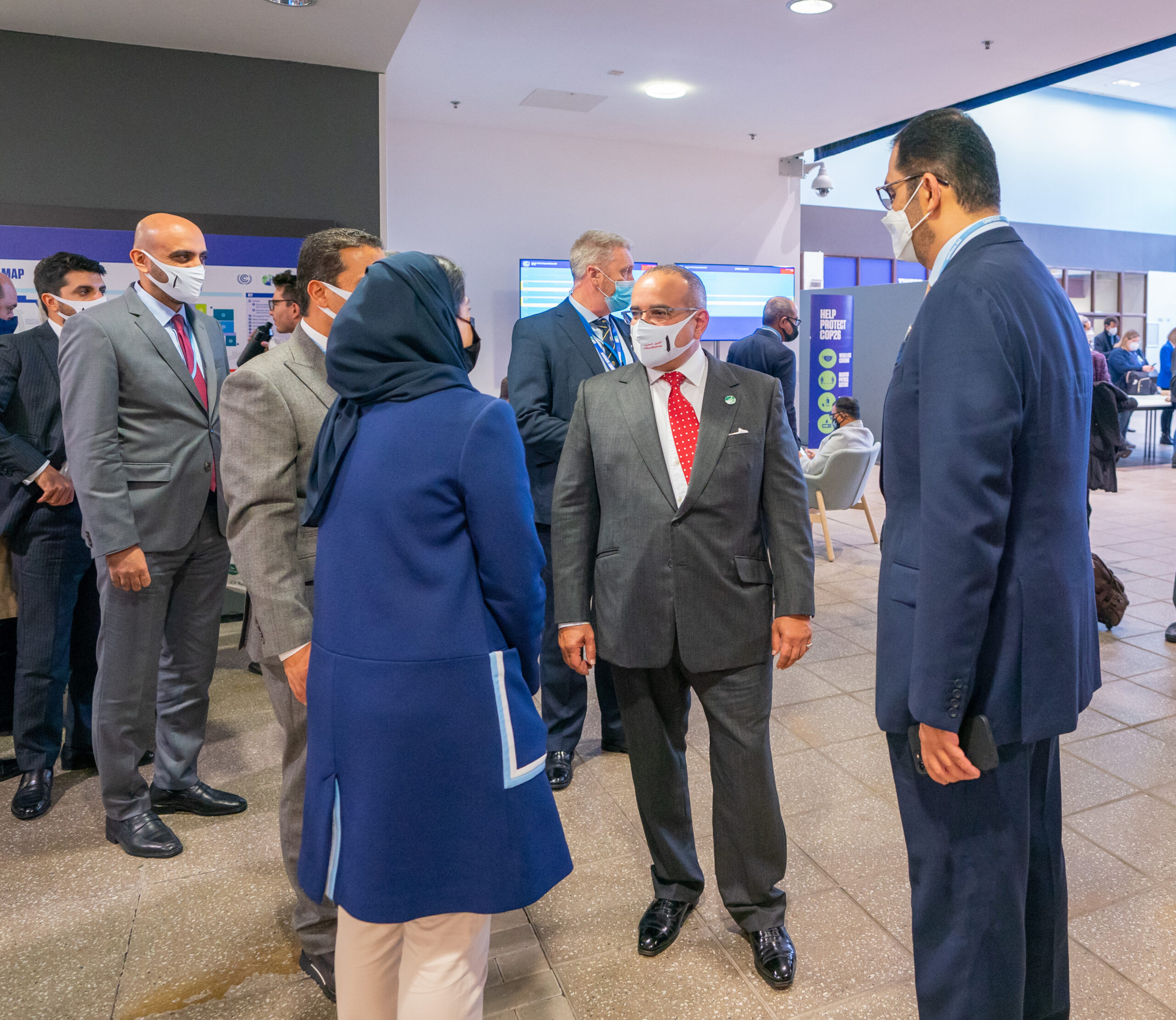 His Royal Highness Prince Salman bin Hamad Al Khalifa, the Crown Prince and Prime Minister, today visited the United Arab Emirates’ (UAE) pavilion at the 26th UN Climate Change Conference (COP26) in Glasgow, Scotland, where he met with the UAE Minister of Industry and Advanced Technology and Special Envoy for Climate Change HE Dr Sultan bin Ahmed Al Jaber.