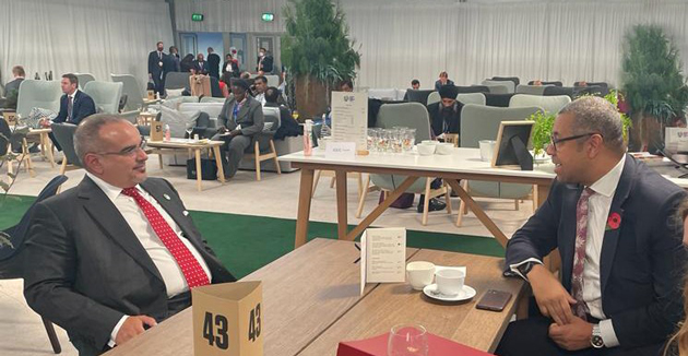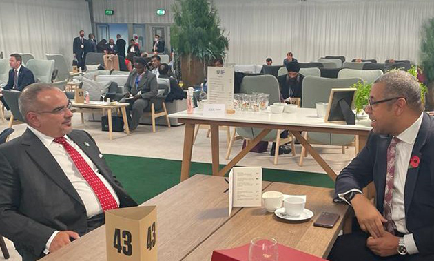 His Royal Highness Prince Salman bin Hamad Al Khalifa, the Crown Prince and Prime Minister, today met with the Minister for Middle East and North Africa at the Foreign, Commonwealth & Development Office, The Rt Hon James Cleverly MP, on the sidelines of the 26th United Nations Climate Change Conference of the Parties (COP26), held in Glasgow, Scotland.