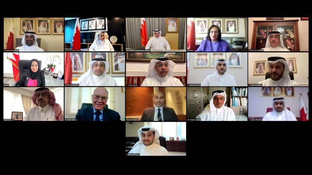 His Royal Highness Prince Salman bin Hamad Al Khalifa, the Crown Prince and Prime Minister, today held a remote meeting with HE Lt. Gen. Shaikh Mohammed bin Abdullah Al Khalifa, Chairman of the Supreme Council of Health (SCH) and Head of the National Medical Taskforce for Combating the Coronavirus (COVID-19), HE Faeqa bint Saeed Al-Saleh, Minister of Health, and members of the Board of Trustees of Primary Healthcare Centres.