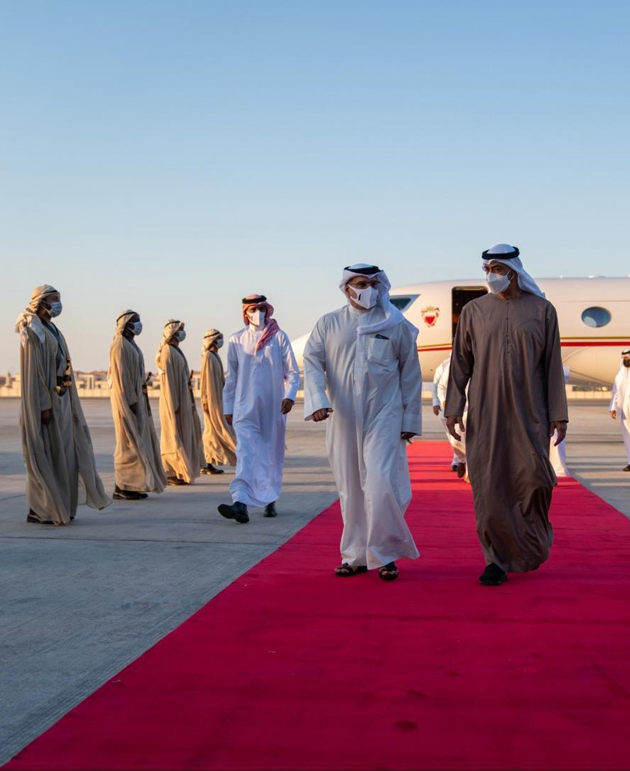 His Royal Highness the Crown Prince and Prime Minister was received by His Highness Sheikh Mohammed bin Zayed Al Nahyan, Crown Prince of Abu Dhabi and Deputy Supreme Commander of the UAE Armed Forces, and His Highness Sheikh Saif bin Zayed Al Nahyan, the Deputy Prime Minister and Minister of Interior of the UAE.
