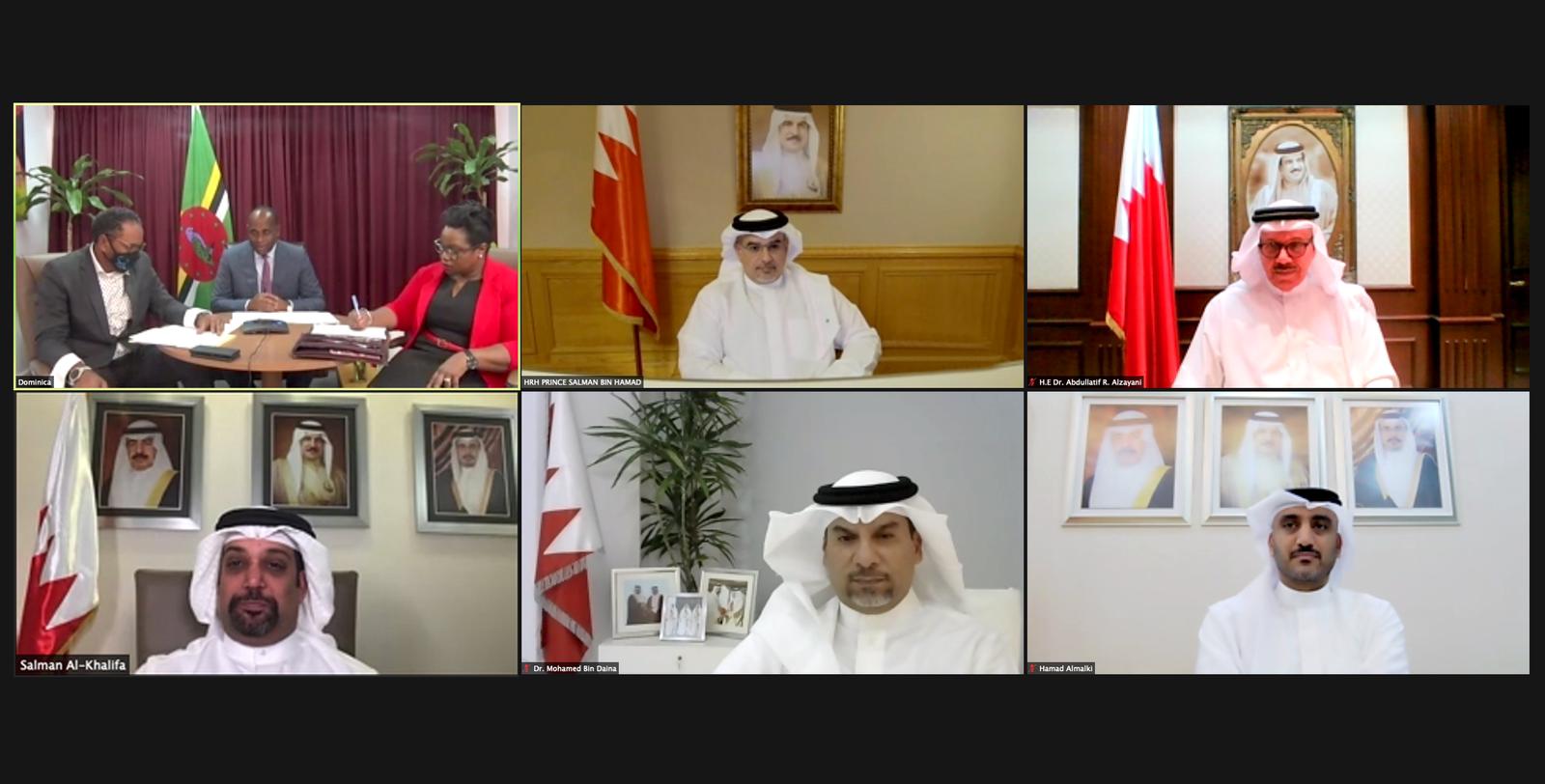 His Royal Highness Prince Salman bin Hamad Al Khalifa, the Crown Prince and Prime Minister, today held a remote meeting with the Prime Minister of the Commonwealth of Dominica, HE Roosevelt Skerrit.