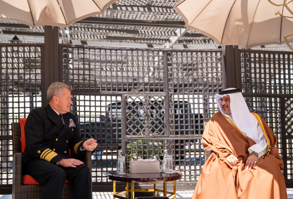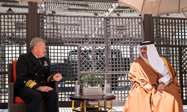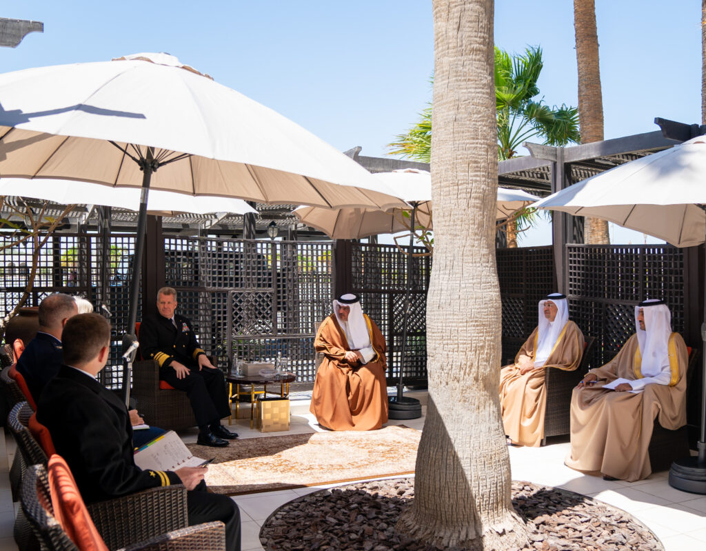 His Royal Highness Prince Salman bin Hamad Al Khalifa, the Crown Prince, Deputy Supreme Commander and Prime Minister, today met with the outgoing Commander of the US Naval Forces Central Command and US 5th Fleet, Vice Admiral Samuel Paparo, at Riffa Palace.