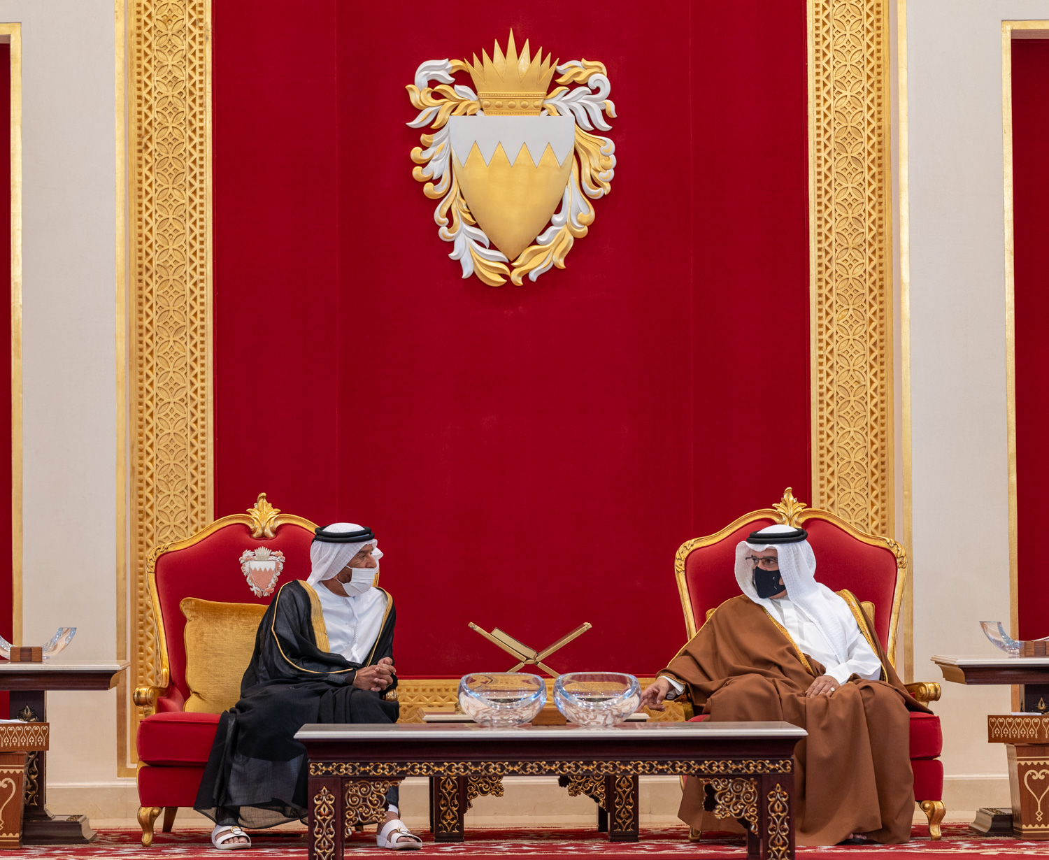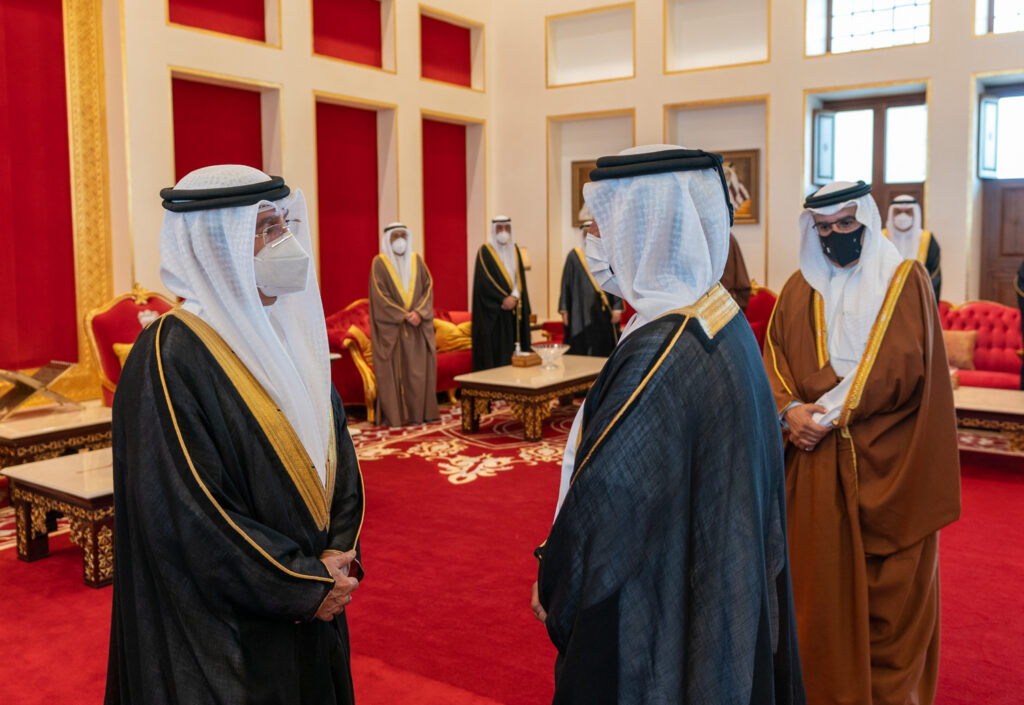 His Royal Highness Prince Salman bin Hamad Al Khalifa, the Crown Prince and Prime Minister, today received HH Sheikh Suroor bin Mohammed Al Nahyan and his accompanying delegation, to offer condolences following the passing of His Royal Highness Prince Khalifa bin Salman Al Khalifa, at Sakhir Air Base.