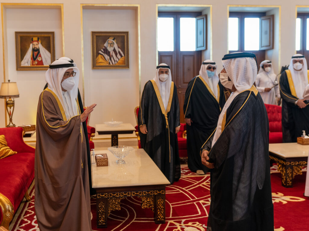 HRH the Crown Prince and Prime Minister receives condolences from HH Sheikh Suroor bin Mohammed Al Nahyan following the passing of HRH Prince Khalifa bin Salman Al Khalifa