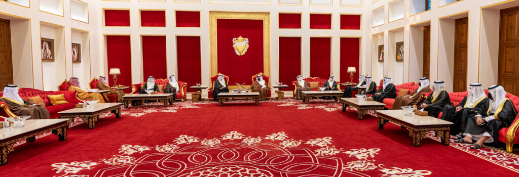 HRH the Crown Prince and Prime Minister receives condolences from HRH Prince Mansour bin Mutaib and HRH Prince Abdulaziz bin Salman following the passing of HRH Prince Khalifa bin Salman Al Khalifa