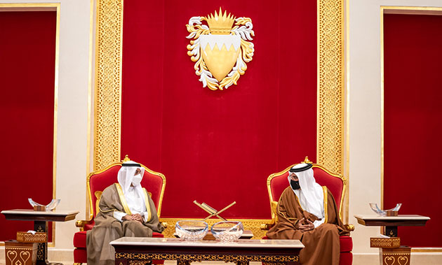 His Royal Highness Prince Salman bin Hamad Al Khalifa, the Crown Prince and Prime Minister, today received the Secretary General of the Gulf Cooperation Council, HE Dr. Nayef Falah M. Al-Hajraf, to offer condolences following the passing of His Royal Highness Prince Khalifa bin Salman Al Khalifa, at Sakhir Air Base.