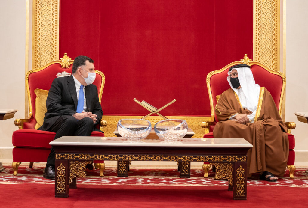 His Royal Highness Prince Salman bin Hamad Al Khalifa, the Crown Prince and Prime Minister, today received the President of the Presidency Council of the State of Libya, HE Faiez Al Serraj, to offer condolences following the passing of His Royal Highness Prince Khalifa bin Salman Al Khalifa, at Sakhir Air Base.