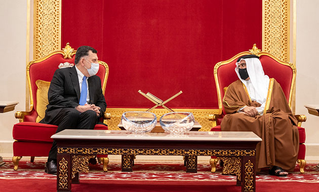 HRH the Crown Prince and Prime Minister receives the condolences of the President of the Presidency Council of the State of Libya following the passing of HRH Prince Khalifa bin Salman Al Khalifa