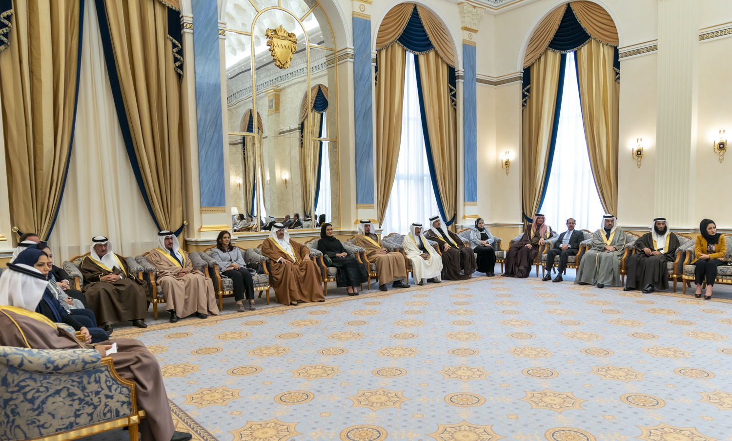The meeting was also attended by HH Shaikh Mohammed bin Mubarak Al Khalifa, Deputy Prime Minister, HE Jawad bin Salim Alarrayedh, Deputy Prime Minister, HE Shaikh Khalid bin Abdullah Al Khalifa, Deputy Prime Minister, HE Sameer Abdulla Nass, Chairman of the Bahrain Chamber of Commerce and Industry, as well as a number of other senior officials.