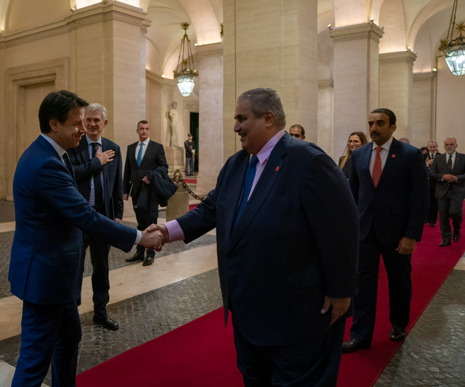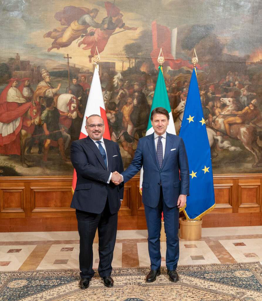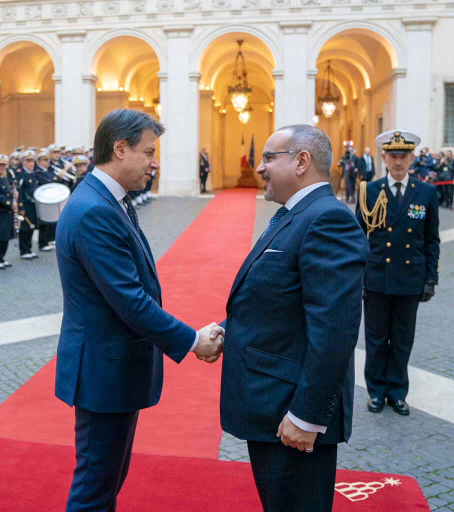 His Royal Highness Prince Salman bin Hamad Al Khalifa, Crown Prince, Deputy Supreme Commander and First Deputy Prime Minister, today met with HE Giuseppe Conte, Prime Minister of the Italian Republic, at the Palazzo Chigi in Rome.