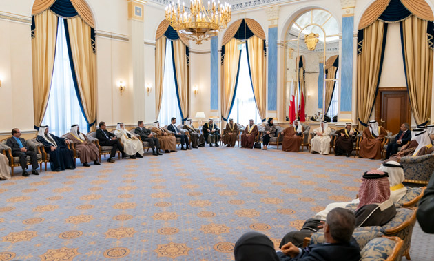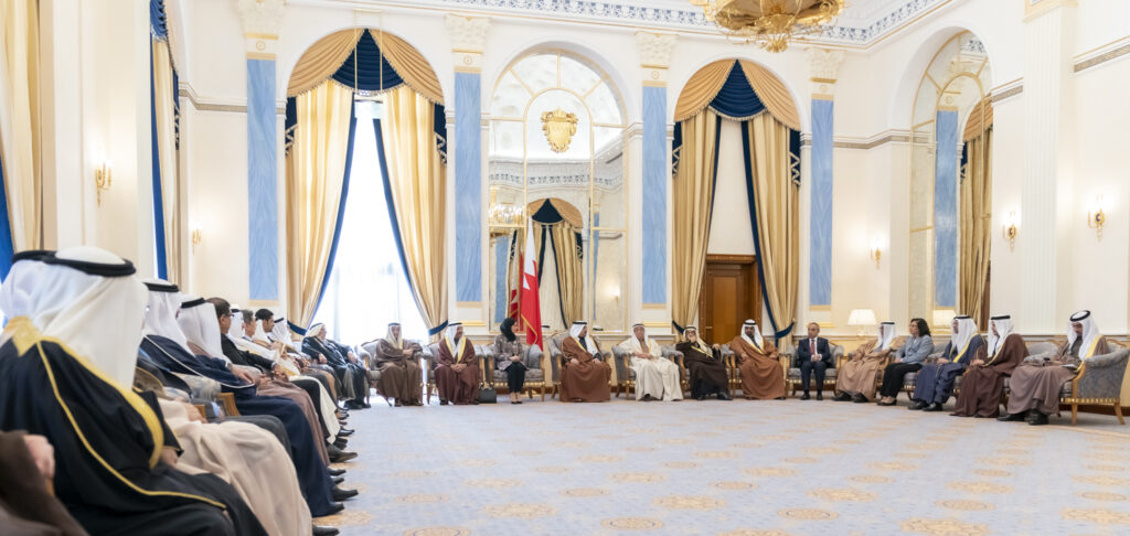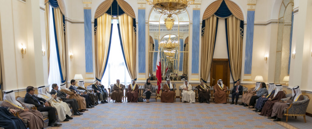 The meeting was also attended by HH Shaikh Mohammed bin Mubarak Al Khalifa, Deputy Prime Minister, HE Jawad bin Salim Alarrayedh, Deputy Prime Minister, HE Shaikh Khalid bin Abdullah Al Khalifa, Deputy Prime Minister, HE Sameer Abdulla Nass, Chairman of the Bahrain Chamber of Commerce and Industry, and a number of senior officials.