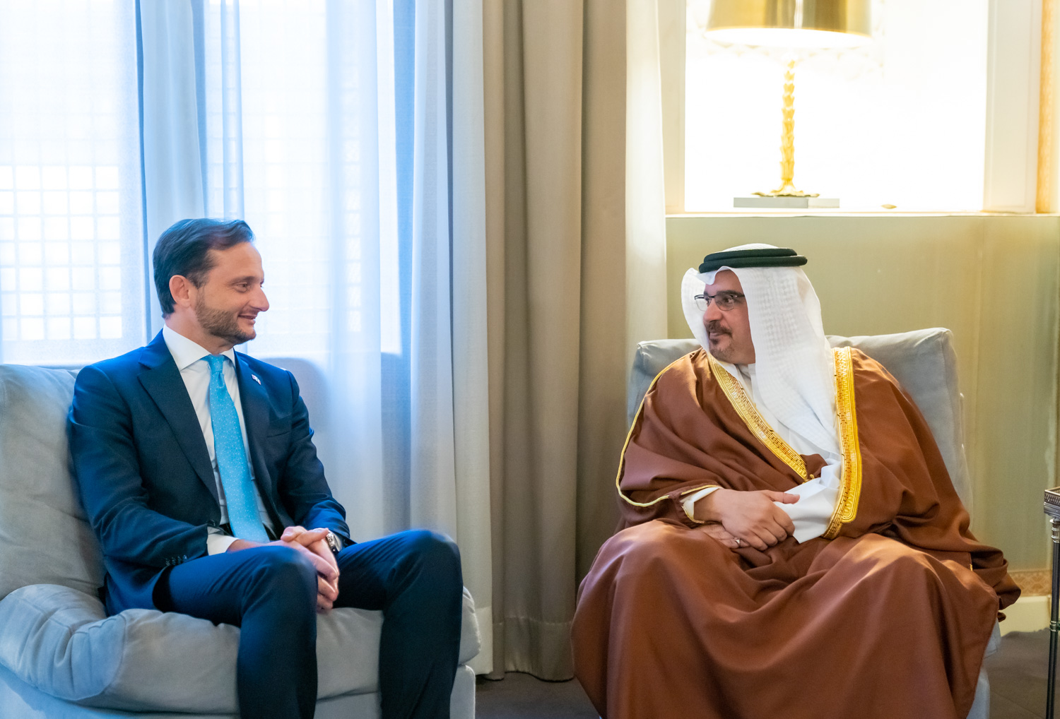His Royal Highness Prince Salman bin Hamad Al Khalifa, Crown Prince, Deputy Supreme Commander and First Deputy Prime Minister, today received the Ambassador of the Italian Republic, HE Domenico Bellato, at Riffa Palace, to mark the end of the Ambassador’s service in the Kingdom.