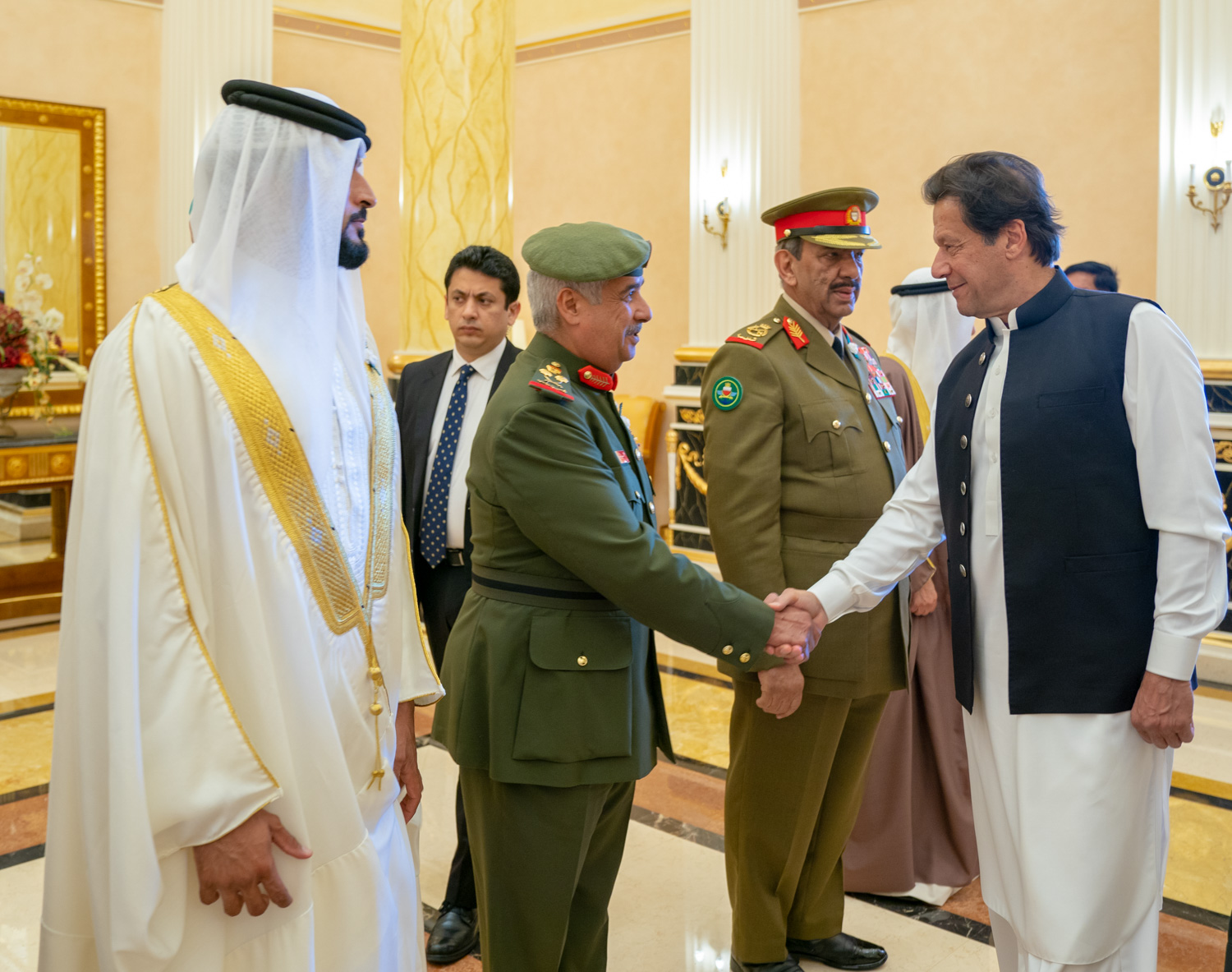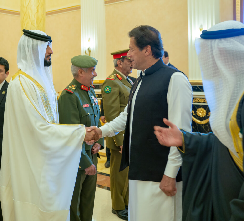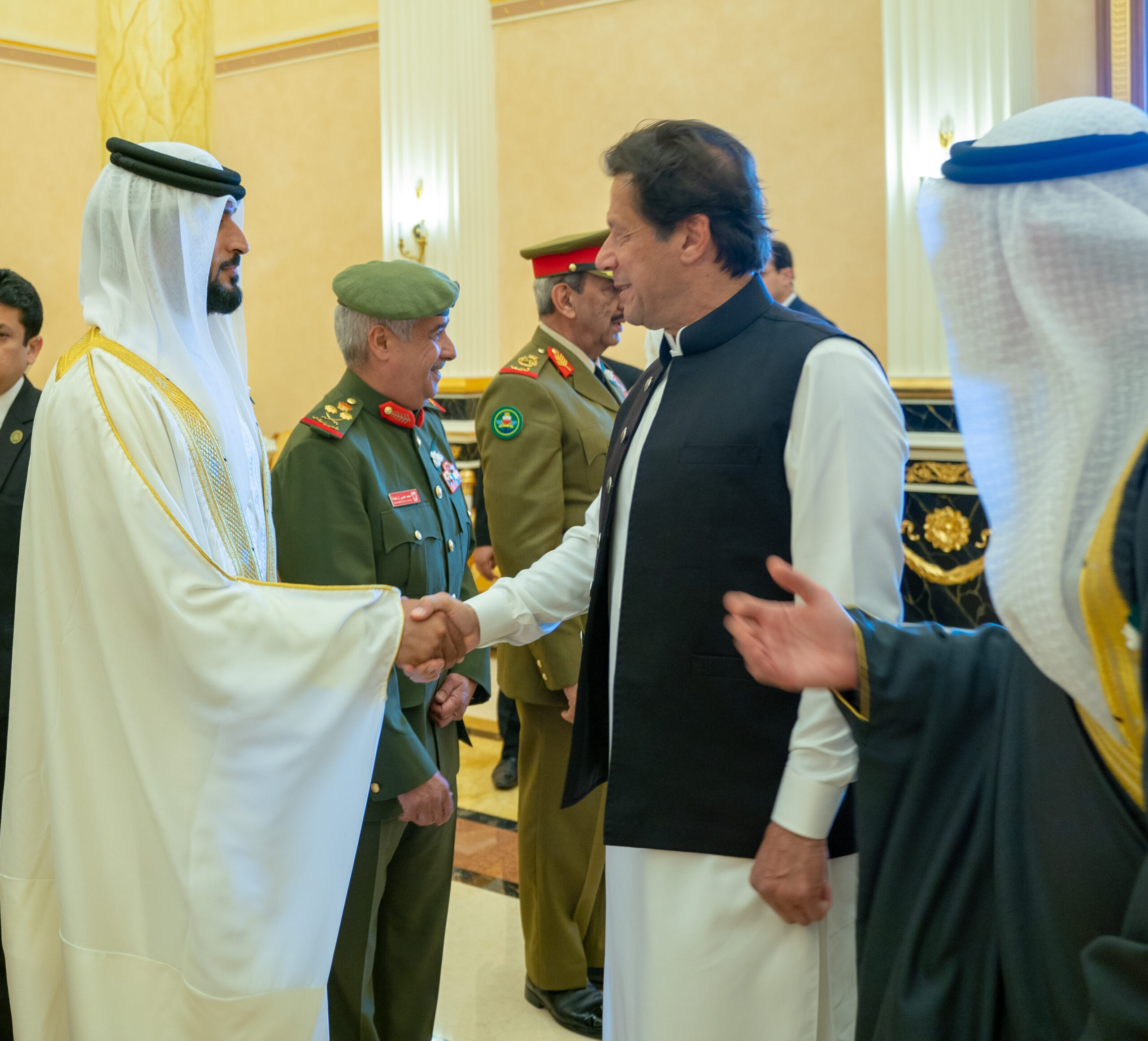 Upon arrival at Gudaibiya Palace, a formal reception ceremony took place to greet HE the Prime Minister of Pakistan, and both countries national anthems were played.