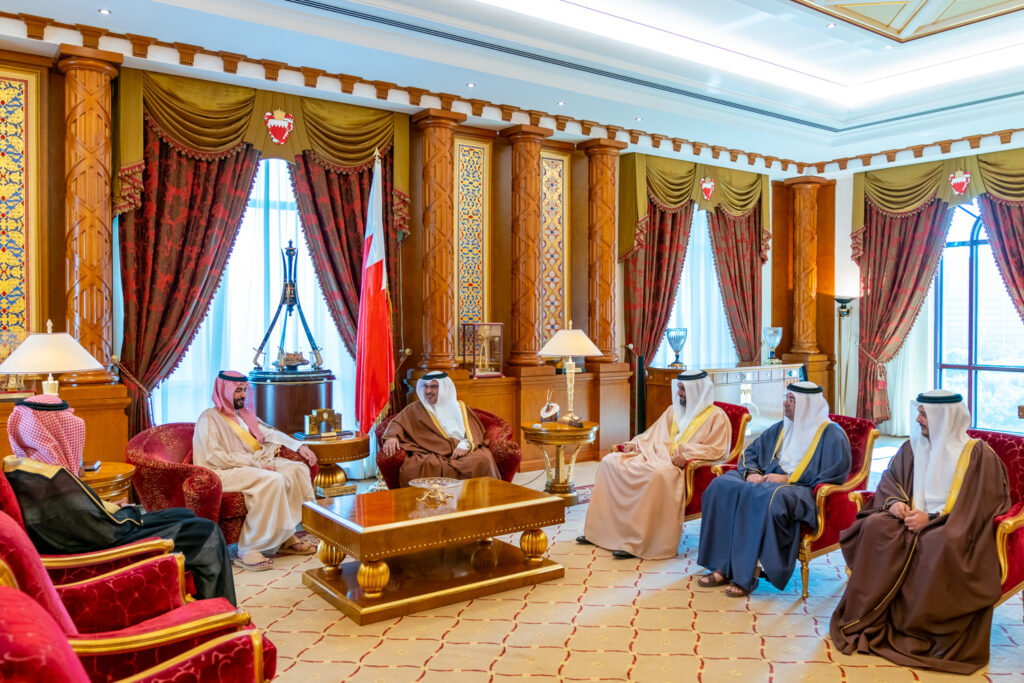 His Royal Highness Prince Salman bin Hamad Al Khalifa, the Crown Prince, Deputy Supreme Commander, and First Deputy Prime Minister, today received the newly appointed Ambassador of the Kingdom of Saudi Arabia to the Kingdom of Bahrain, HRH Prince Sultan bin Ahmed bin Abdulaziz Al Saud, at Gudaibiya Palace.