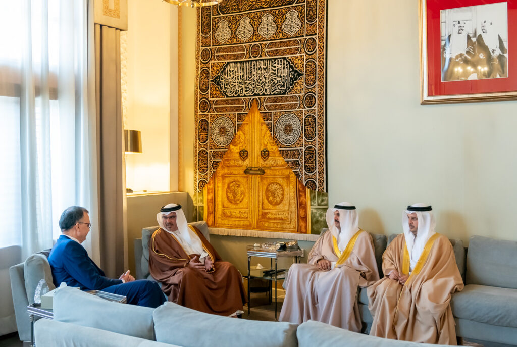 His Royal Highness Prince Salman bin Hamad Al Khalifa, Crown Prince, Deputy Supreme Commander, and First Deputy Prime Minister, today received the newly appointed Ambassador of the Kingdom of Morocco to the Kingdom of Bahrain, His Excellency Mustapha Benkhayi, at Riffa Palace.