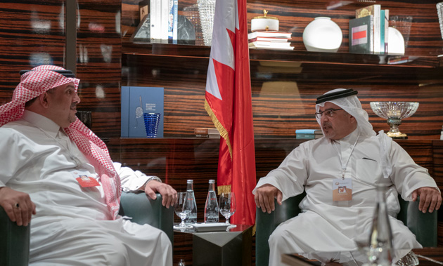 His Royal Highness Prince Salman bin Hamad Al Khalifa, the Crown Prince, Deputy Supreme Commander and First Deputy Prime Minister today met with the Kingdom of Saudi Arabia’s Minister of State Mr. Mohammed bin Abdul Malik bin Abdullah Al-AshSheikh and the Minister of Finance HE Mohammed bin Abdullah Al-Jadaan on the sidelines of the Peace to Prosperity Workshop – hosted in partnership with the United States.