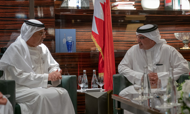 His Royal Highness Prince Salman bin Hamad Al Khalifa, the Crown Prince, Deputy Supreme Commander and First Deputy Prime Minister, today met with the United Arab Emirates’ (UAE) Minister of State for Financial Affairs, HE Obaid bin Humaid Al Tayer and the Minister of State to the UAE, Chairman of the Abu Dhabi Global Market, HE Ahmed bin Ali Al Sayegh, on the side-lines of the Peace to Prosperity Workshop, which is hosted in partnership with the United States.