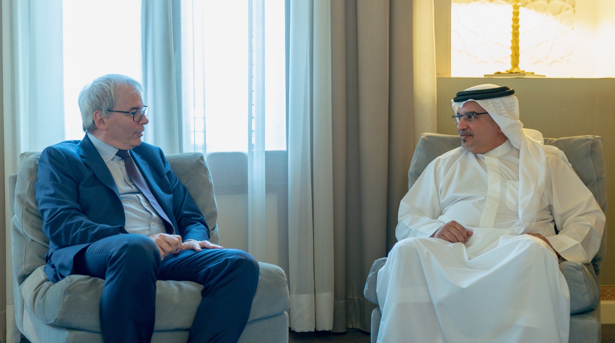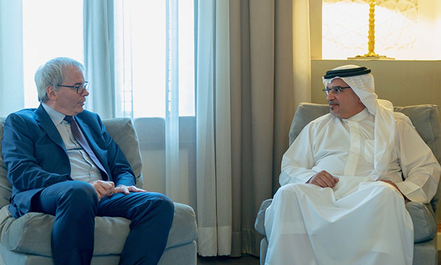 His Royal Highness Prince Salman bin Hamad Al Khalifa, Crown Prince, Deputy Supreme Commander and First Deputy Prime Minister today received the President of the Movement of French Enterprises (MEDEF), Frédéric Sanchez, at Riffa Palace.
