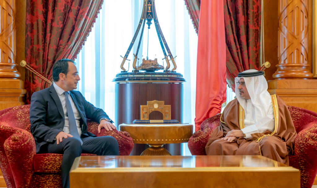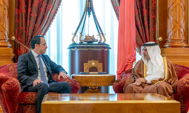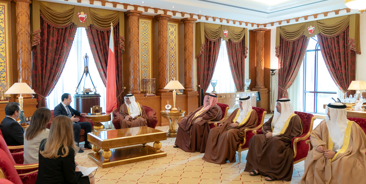 The Deputy King, His Royal Highness Prince Salman bin Hamad Al Khalifa, today received the Minister of Foreign Affairs of the Republic of Cyprus, His Excellency Nikos Christodoulides, at Gudaibiya Palace.