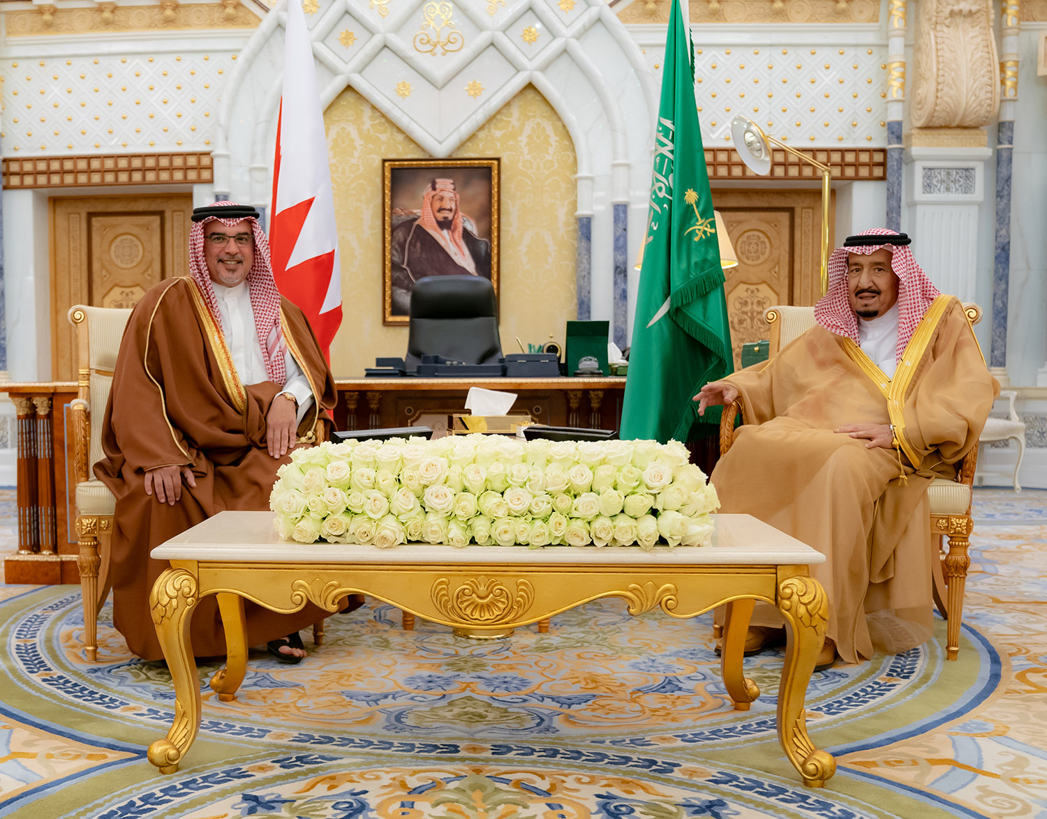 The Custodian of the Two Holy Mosques, King Salman bin Abdulaziz Al Saud, today received His Royal Highness Prince Salman bin Hamad Al Khalifa, the Crown Prince, Deputy Supreme Commander and First Deputy Prime Minister, at Al-Yamamah Palace, Riyadh on the sidelines of the Future Investment Initiative (FII) held under the patronage of the Custodian of the Two Holy Mosques, King Salman bin Abdulaziz Al Saud and the chairmanship of HRH Prince Mohammed bin Salman.