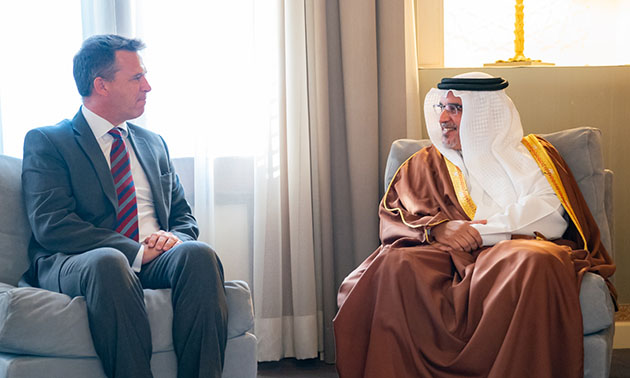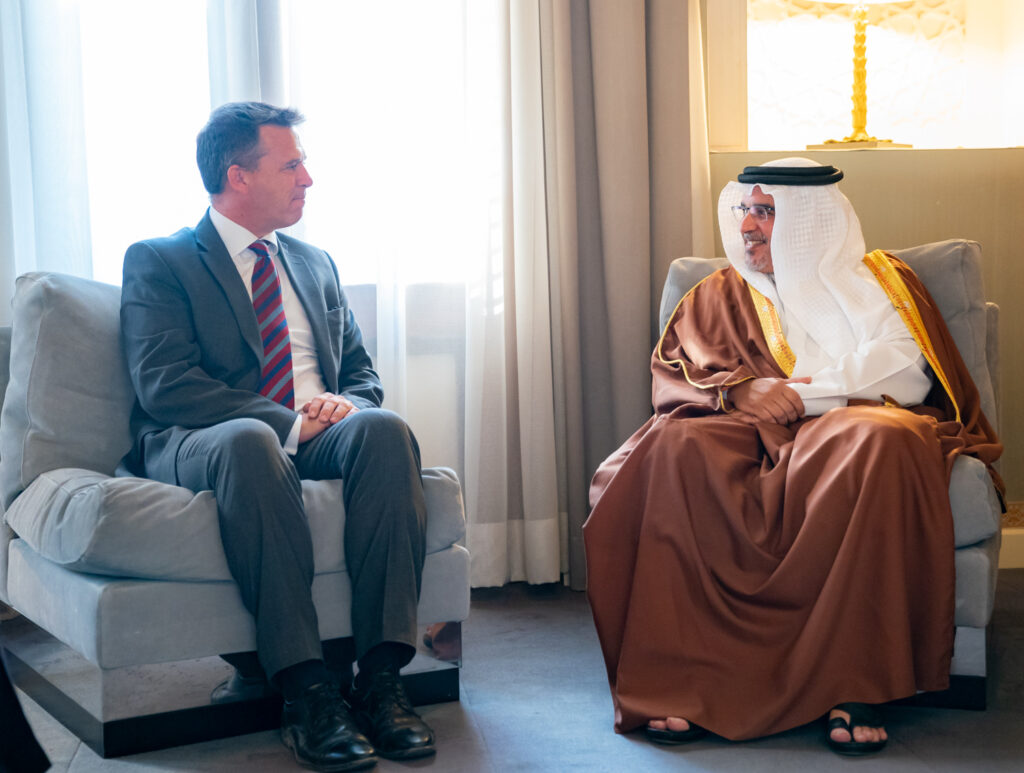 His Royal Highness Prince Salman bin Hamad Al Khalifa, the Crown Prince, Deputy Supreme Commander and First Deputy Prime Minister today met the United Kingdom’s Minister of State for the Armed Forces, the Rt Hon Mark Lancaster TD MP, at Riffa Palace.