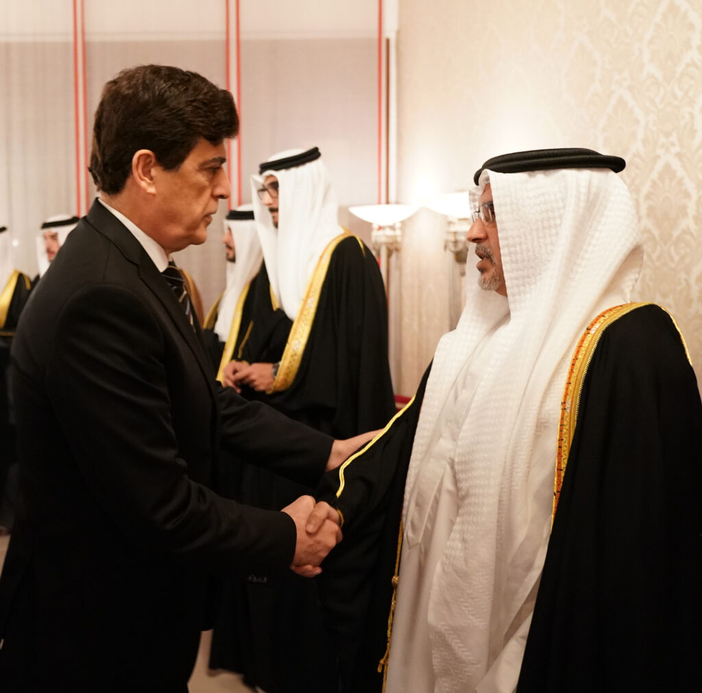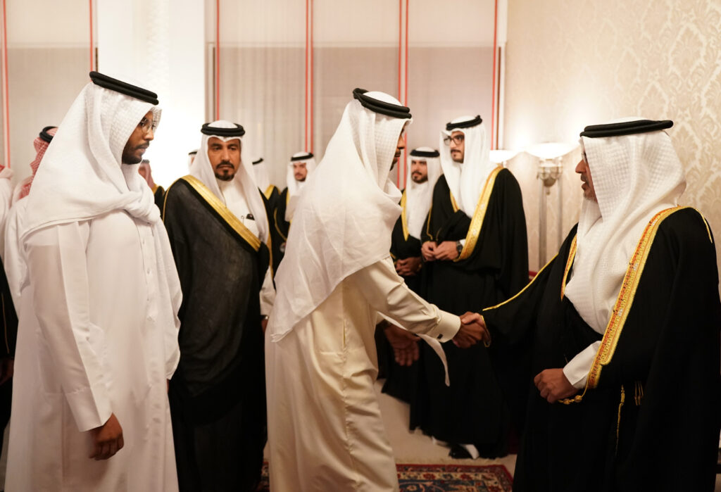 His Royal Highness Prince Salman bin Hamad Al Khalifa, the Crown Prince, Deputy Supreme Commander and First Deputy Prime Minister, in the presence of His Highness Shaikh Isa bin Salman bin Hamad Al Khalifa, His Highness Shaikh Mohammed bin Salman bin Hamad Al Khalifa, His Excellency the President of the Court of the Crown Prince, Shaikh Khalifa bin Duaij Al Khalifa, and Shaikh Salman bin Duaij Al Khalifa, today received condolences from members of the royal family, Chairman of the Council of Representatives and Chairman of the Shura Council, senior officials, diplomats, community leaders, and citizens at Riffa Palace following the sad passing of Her Highness Shaikha Hala bint Duaij Al Khalifa.