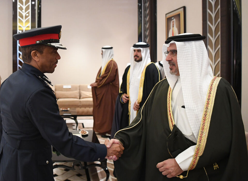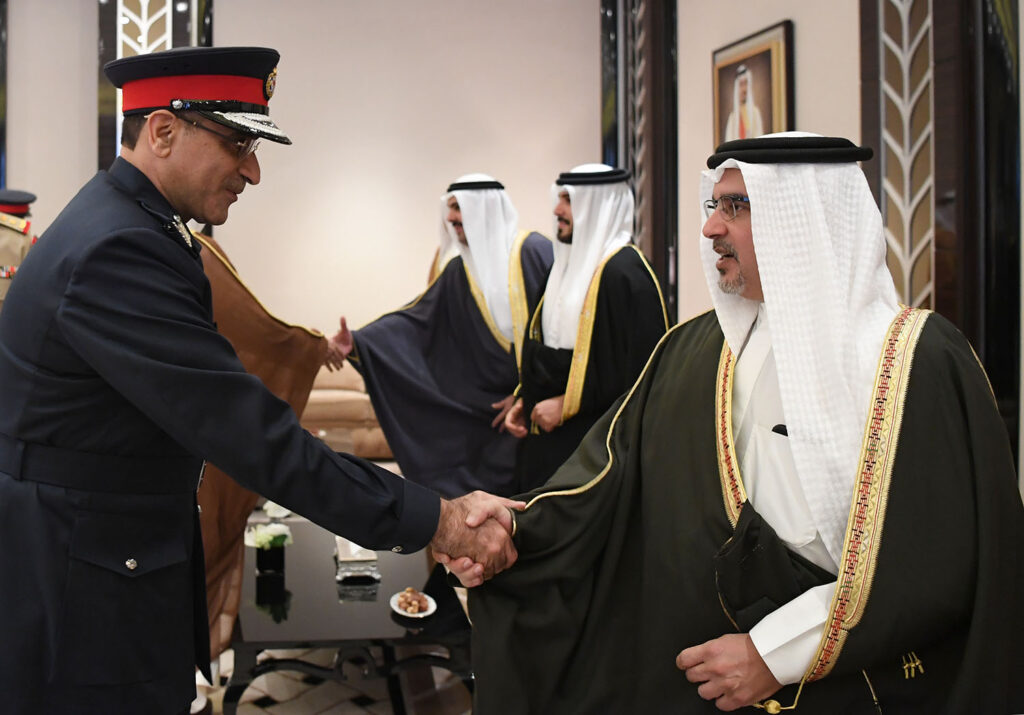 HRH the Crown Prince exchanged Ramadan greetings with HE the Minister of Interior and senior officers, honoured the sacrifices made by MOI security personnel, and commemorated the Kingdom’s fallen servicemen who sacrificed their lives for the protection of Bahrain and its citizens.