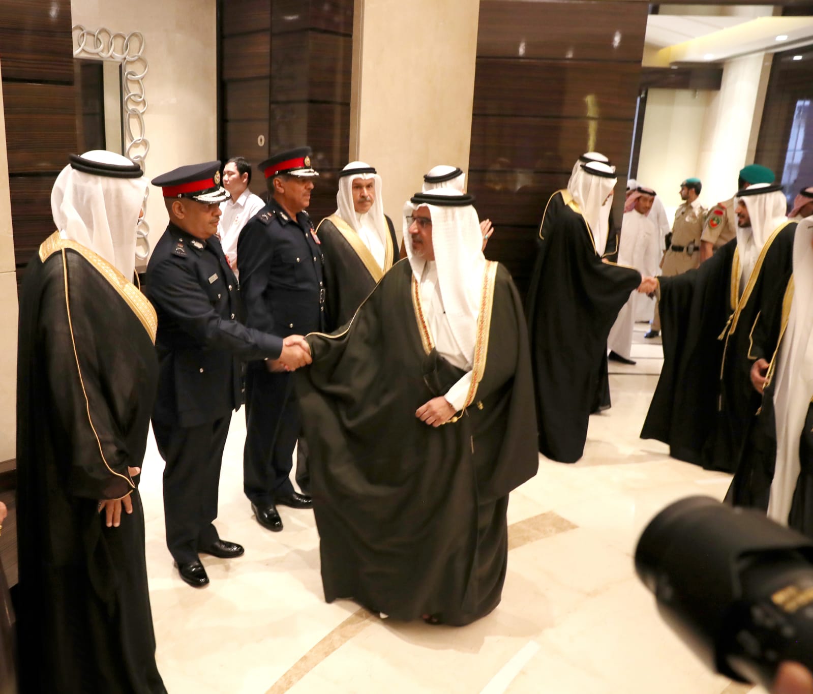 His Royal Highness Prince Salman bin Hamad Al Khalifa, Crown Prince, Deputy Supreme Commander and First Deputy Prime Minister today held an iftar banquet for senior officers and officials from the Ministry of Interior (MOI) at the Public Security Officers’ Club. HRH the Crown Prince was welcomed to the iftar banquet by the Minister of Interior, His Excellency Lieutenant General Shaikh Rashid Bin Abdullah Al-Khalifa.