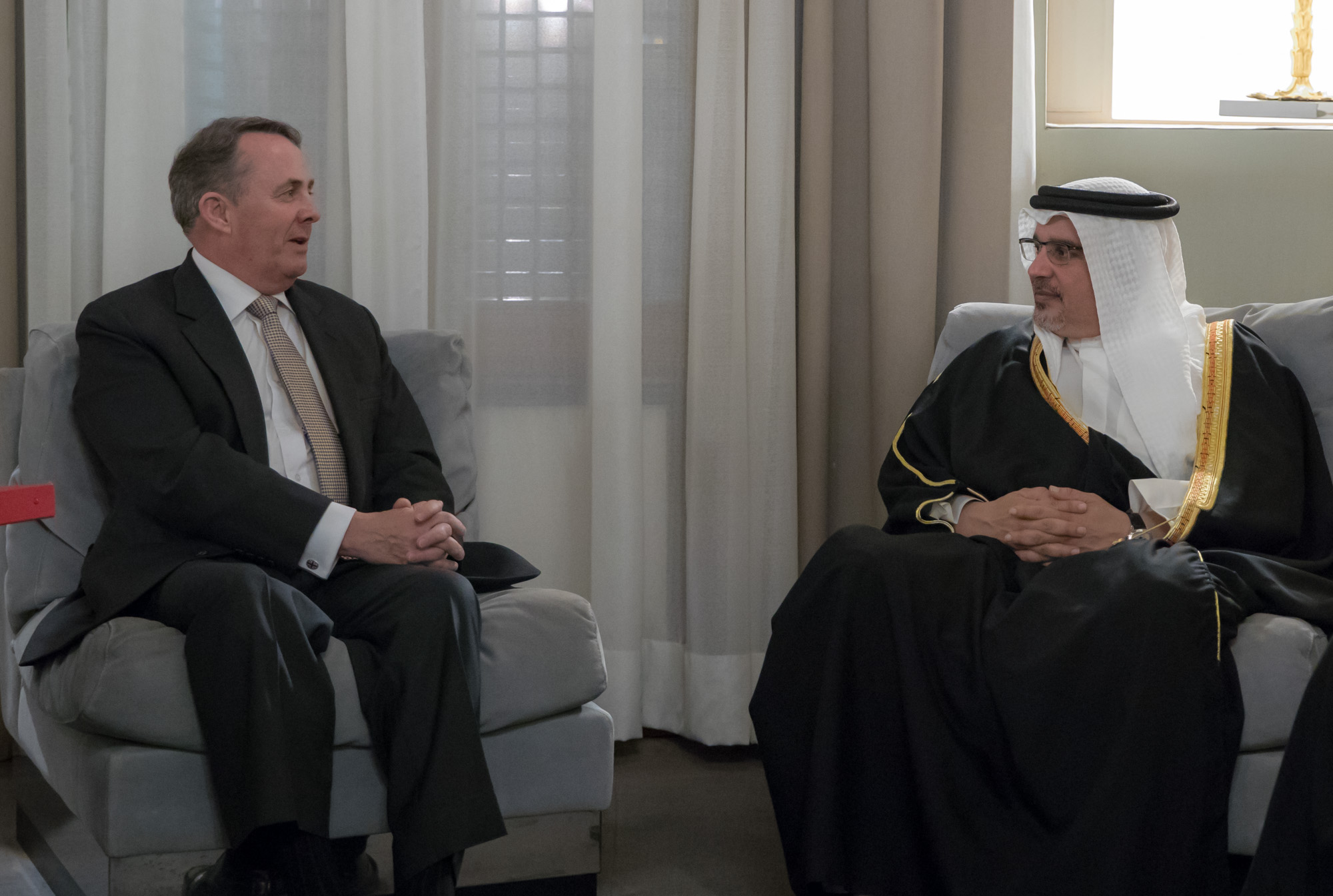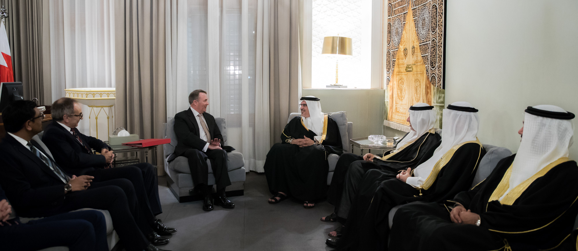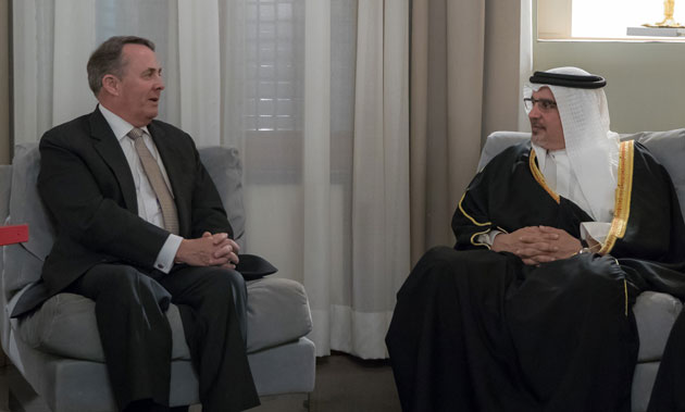 His Royal Highness Prince Salman bin Hamad Al Khalifa, the Crown Prince, Deputy Supreme Commander and First Deputy Prime Minister, this evening received the United Kingdom’s Secretary of State for International Trade, Dr. Liam Fox, at Riffa Palace.