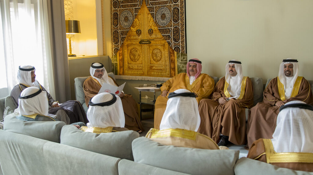 On behalf of HM King Hamad, the Deputy King, HRH Prince Salman bin Hamad Al Khalifa, today received a letter from the Emir of Kuwait, HH Shaikh Sabah Al Ahmad Al Jaber Al Sabah, delivered by Kuwait’s Deputy Prime Minister and Minister of Foreign Affairs HE Sh. Sabah Al-Khaled Al-Hamad Al-Sabah, at Riffa Palace.