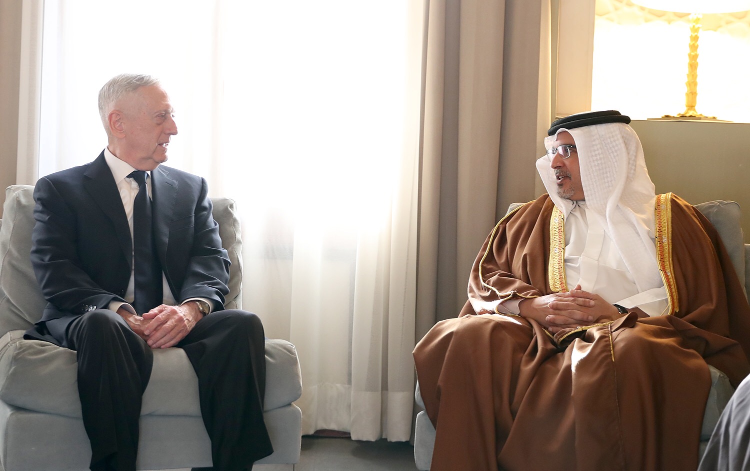 His Royal Highness Prince Salman bin Hamad Al Khalifa, the Crown Prince, Deputy Supreme Commander and First Deputy Prime Minister, today received US Secretary of Defence James N. Mattis at Riffa Palace.