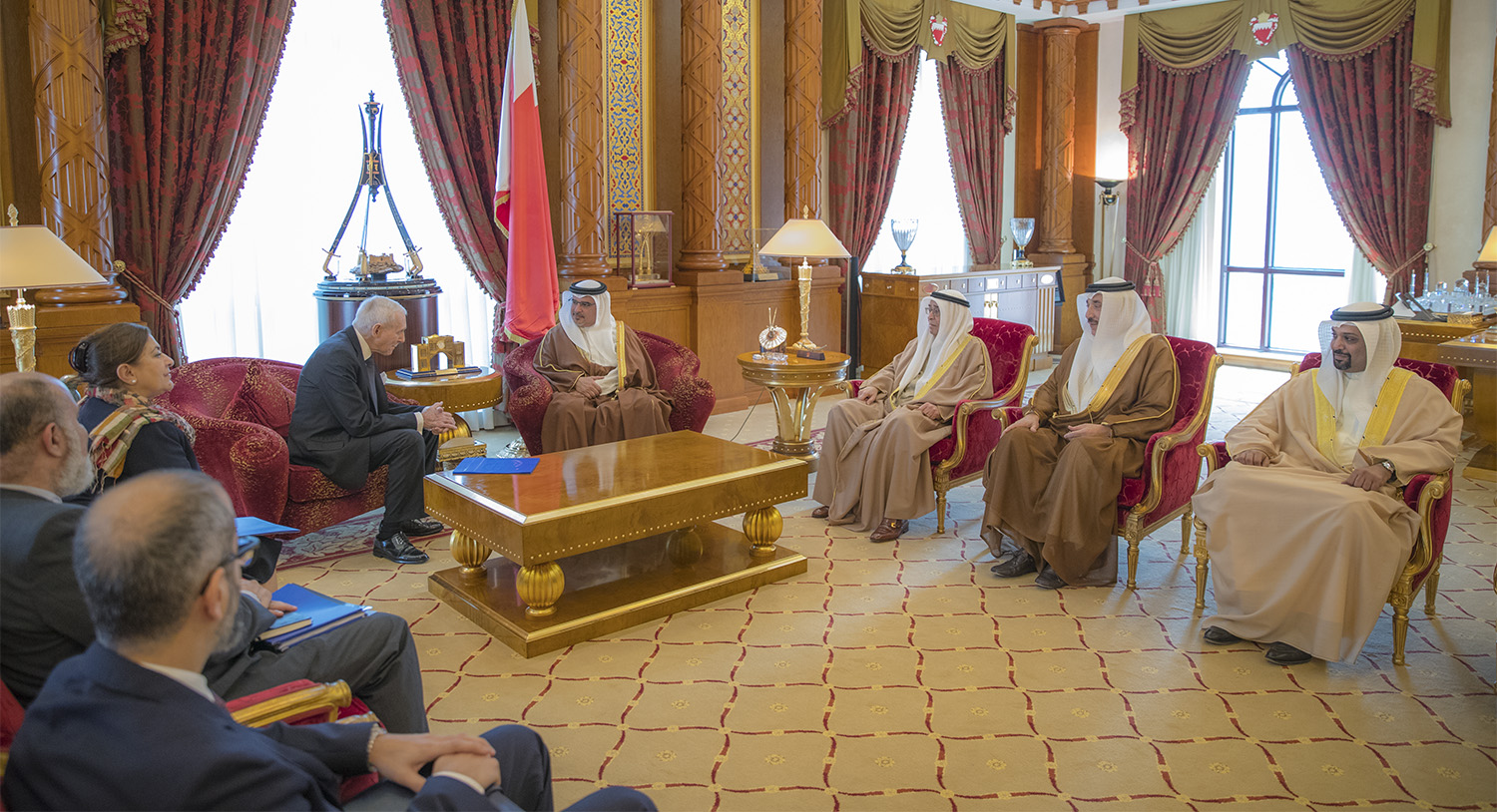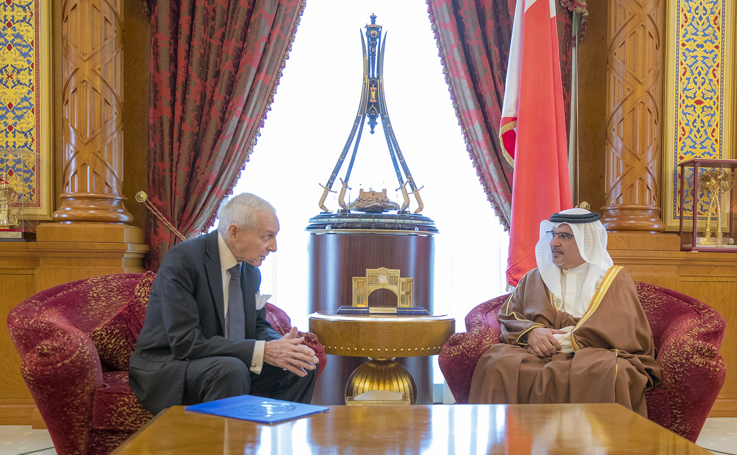 His Royal Highness Prince Salman bin Hamad Al-Khalifa, Crown Prince, Deputy Supreme Commander and First Deputy Prime Minister, today received the Director General of the International Organization of Migration (IOM), His Excellency William Lacy Swing, at Gudaibiya Palace.